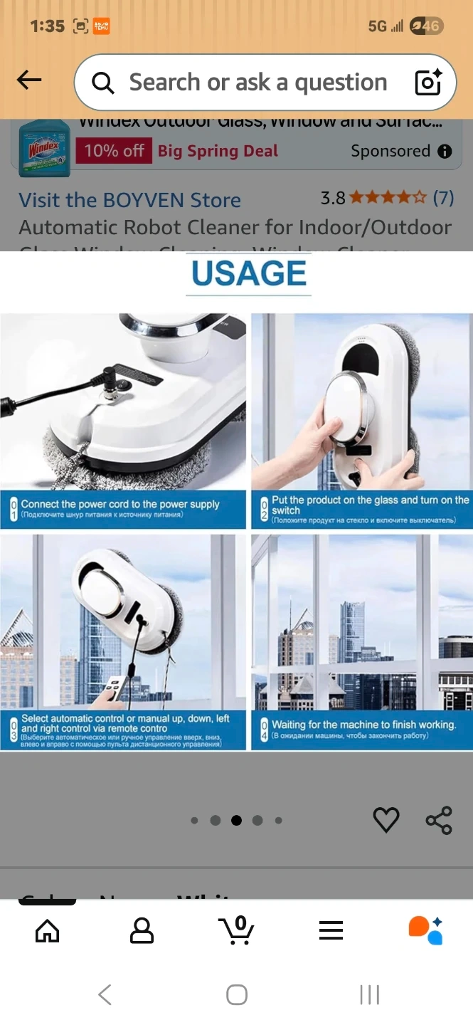 This automatic window cleaning robot is designed for indoor and outdoor use. It features automatic water spray, 5600PA suction power, and intelligent planning. Control it manually or automatically with the included remote. It's great for cleaning high windows!