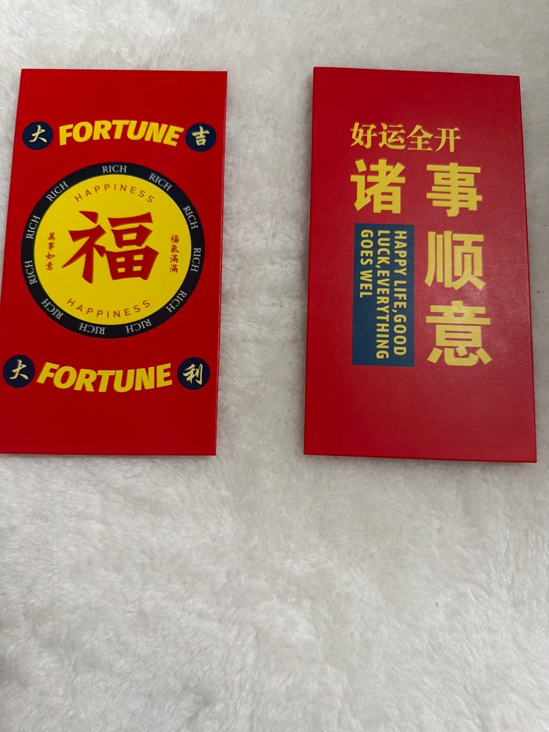 Set of red envelopes Includes text like 'Happy Life, Good Luck, Everything Goes Well.' A nice way to give gifts or monetary presents during celebrations. Perfect for Lunar New Year and other special occasions!