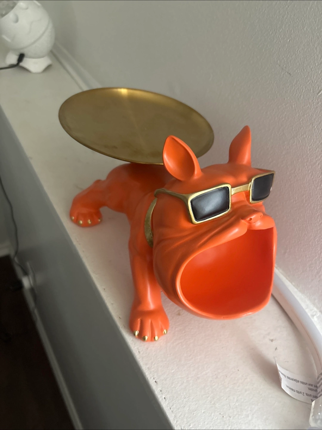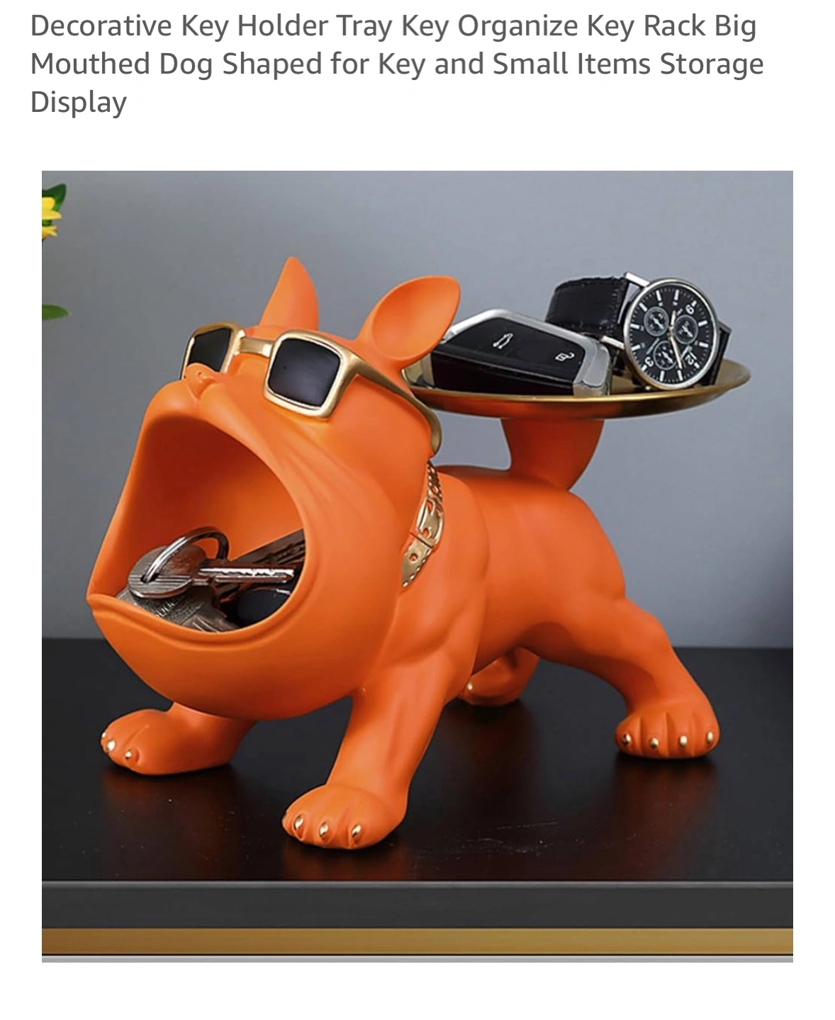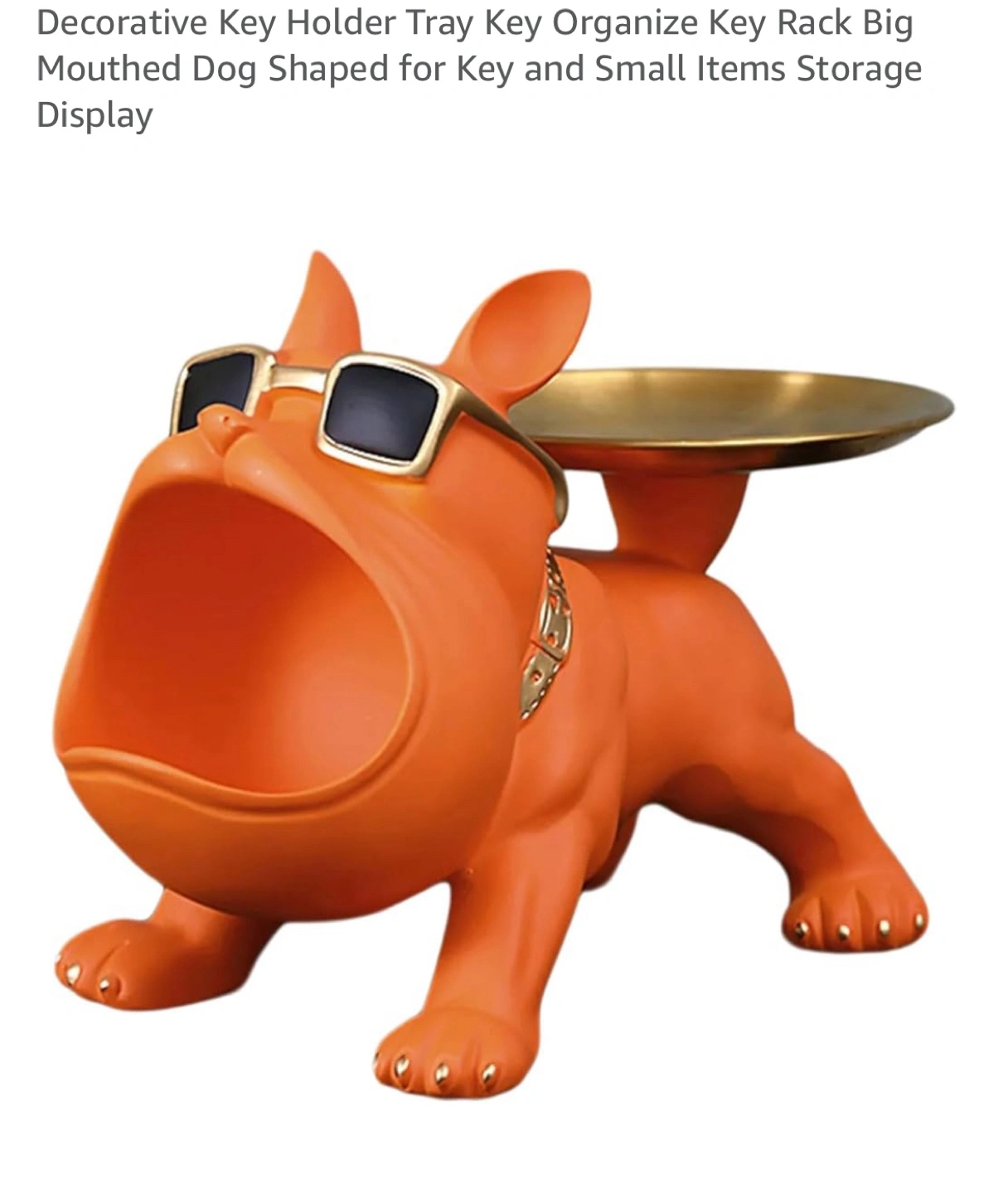NEW unique decorative key holder tray features a big-mouthed dog design, perfect for organizing keys and small items. It's shaped like a French Bulldog wearing sunglasses and a gold chain, adding a fun touch to any space. Use it to store keys, watches, or other small items on the tray. Selling for 15
