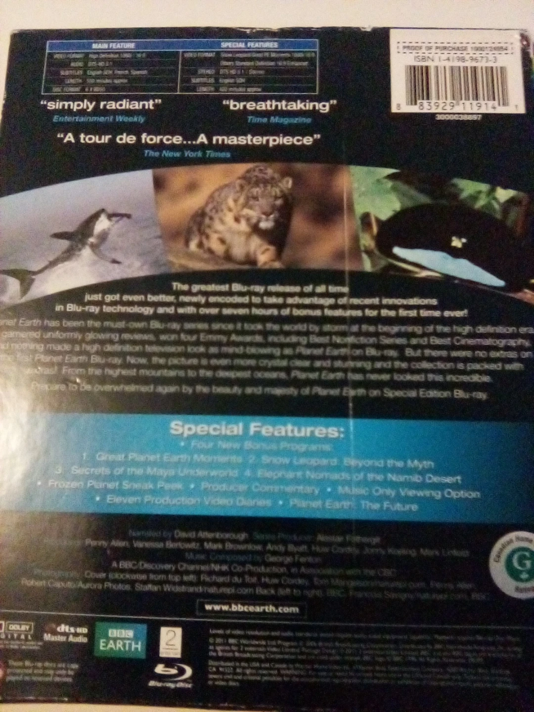 Planet Earth Blu-ray Special Edition includes all six discs with award-winning nature documentary footage. Experience stunning visuals from the highest mountains to the deepest oceans. Special features include bonus programs and behind-the-scenes content.