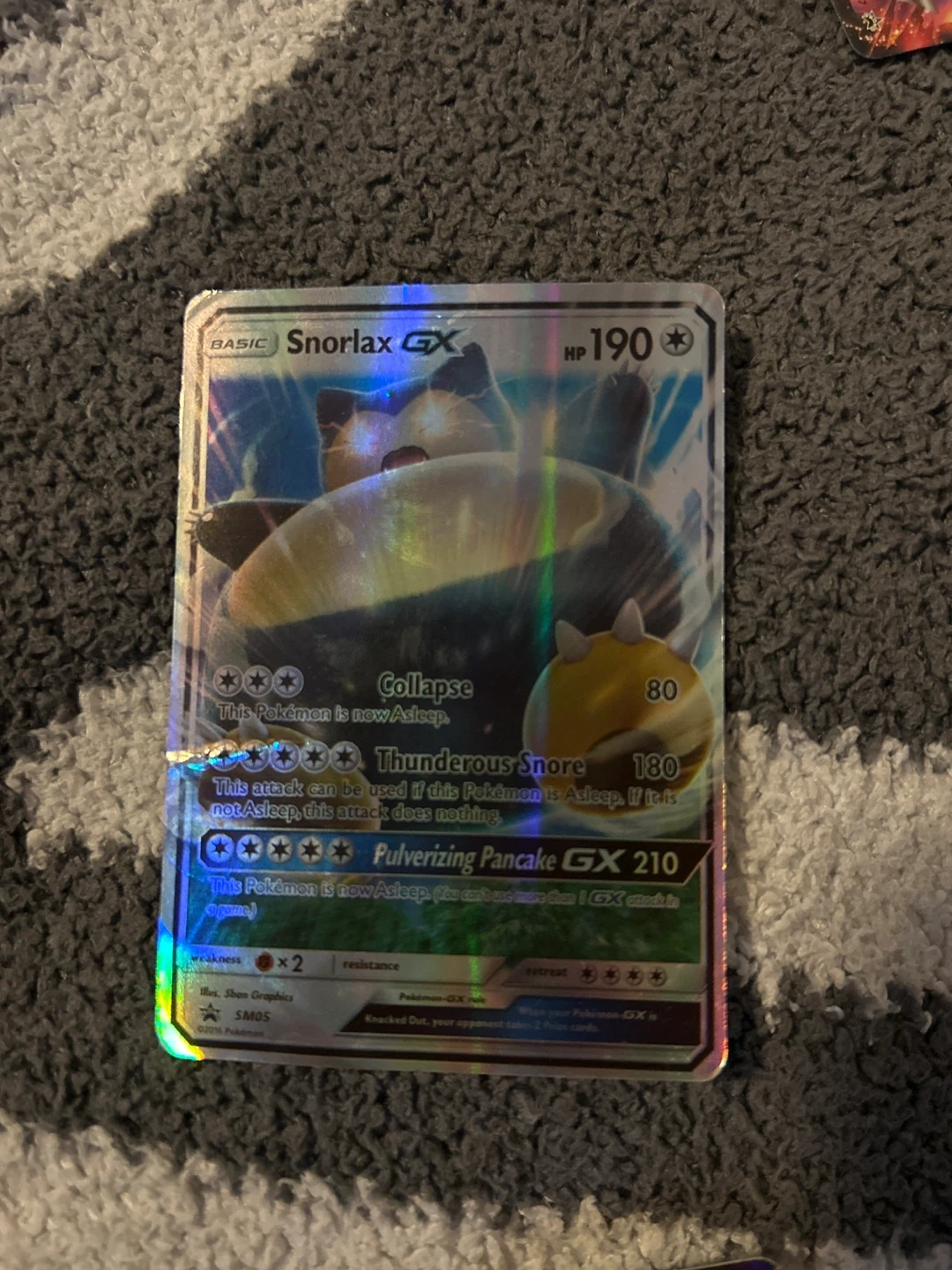 This is a basic Snorlax GX Pokémon trading card. It has 190 HP and features the attack Pulverizing Pancake GX for 210 damage. The card is from 2016.