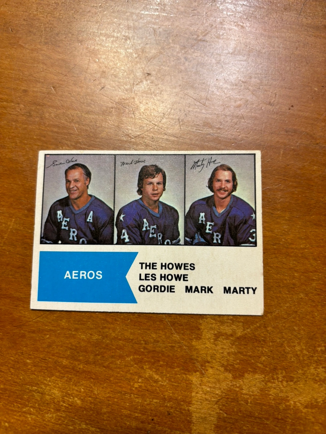 1974 O-PEE-CHEE HOUSTON AEROS Card #1 HOWES GORDIE, MARK & MARTY