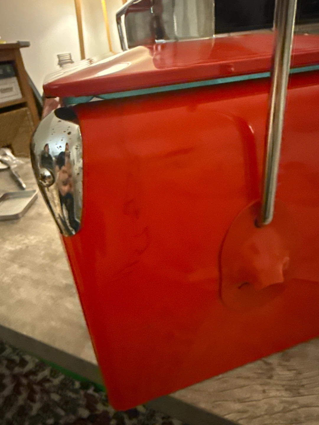 Buy & SellRed Metal CoolerRed Metal Cooler$31This is a red metal cooler. It's a classic design with a chrome handle and accents. The interior is blue. Some minor dents are present.ConditionNewWHERE TO MEETHomeView MapSELLERverifiedJimmyBolingbrook650 reviews0 chats·0 favorites·11 viewsSEND CHAT TO SELLERHi Jimmy! I’m interested in your listing.Hi Jimmy! I’m interested in your listing.Get the Karrot app to chatSign In to chat