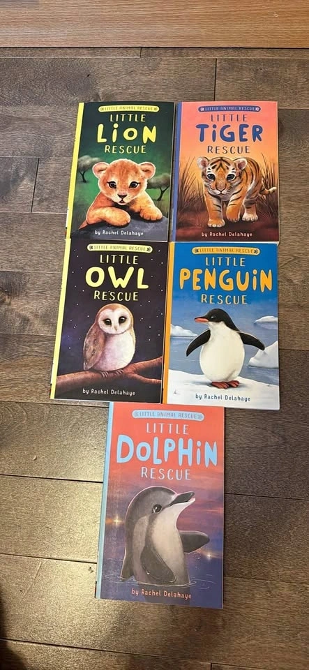 Awesome set of 5 Little Animal Rescue books by Rachel Delahaye. Includes: Little Lion Rescue, Little Tiger Rescue, Little Owl Rescue, Little Penguin Rescue, Little Dolphin Rescue. Great for kids who love animals and adventure stories. Price is firm, thank you.