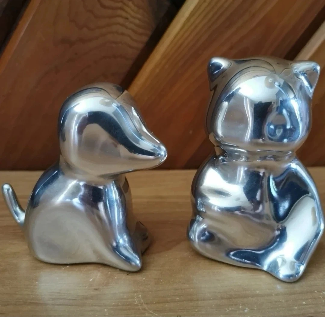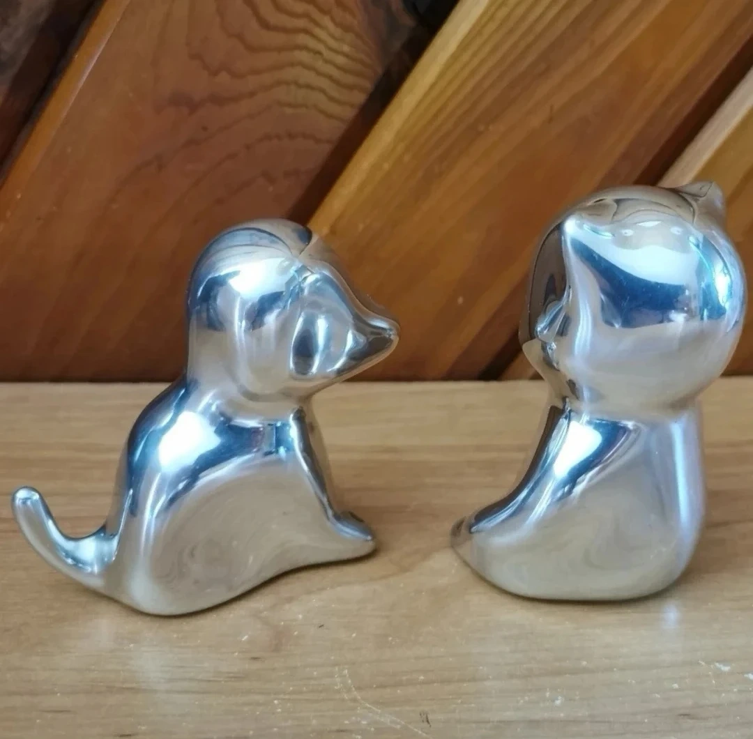 Pair of Hoselton Canada Solid Aluminum Sculptures. Beautiful signed art pieces, in excellent condition, cat is about 3 inch tall, dog is about 2.5.