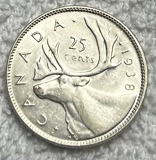 Up for sale is a 1938 Canadian Silver Quarter, with details in line with others graded MS 60 or better. This coin features the iconic caribou design and is a great addition to any collection. Given its age, this coin is in excellent condition, making it a very nice collectible! Don't miss the opportunity to own a piece of Canadian history. If the ad is up, the coin is available! Cash accepted, Cashless payment accepted.