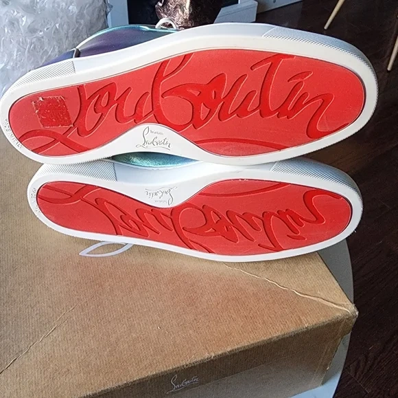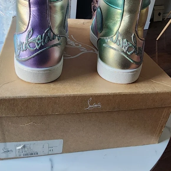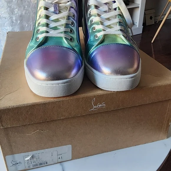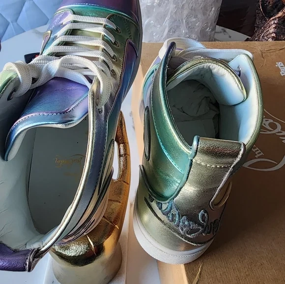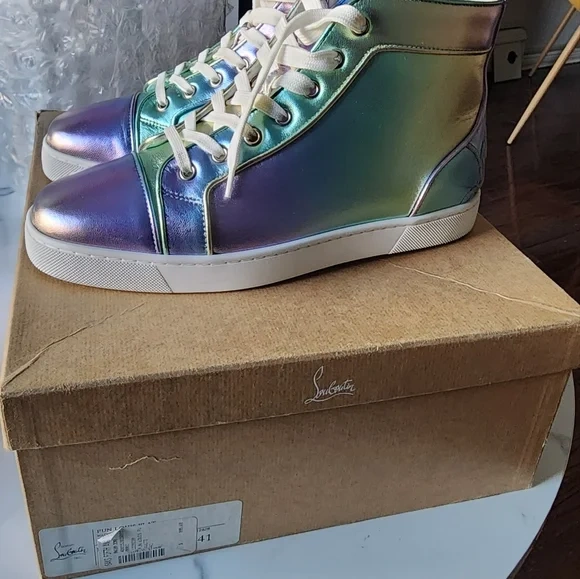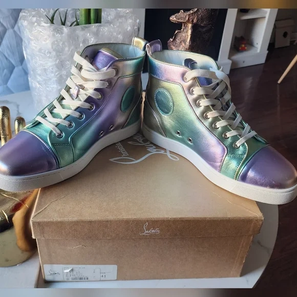 Christian Louboutin Fun Louis high-top sneakers in an iridescent color. They come with the original box. Size is 41 (US 8).