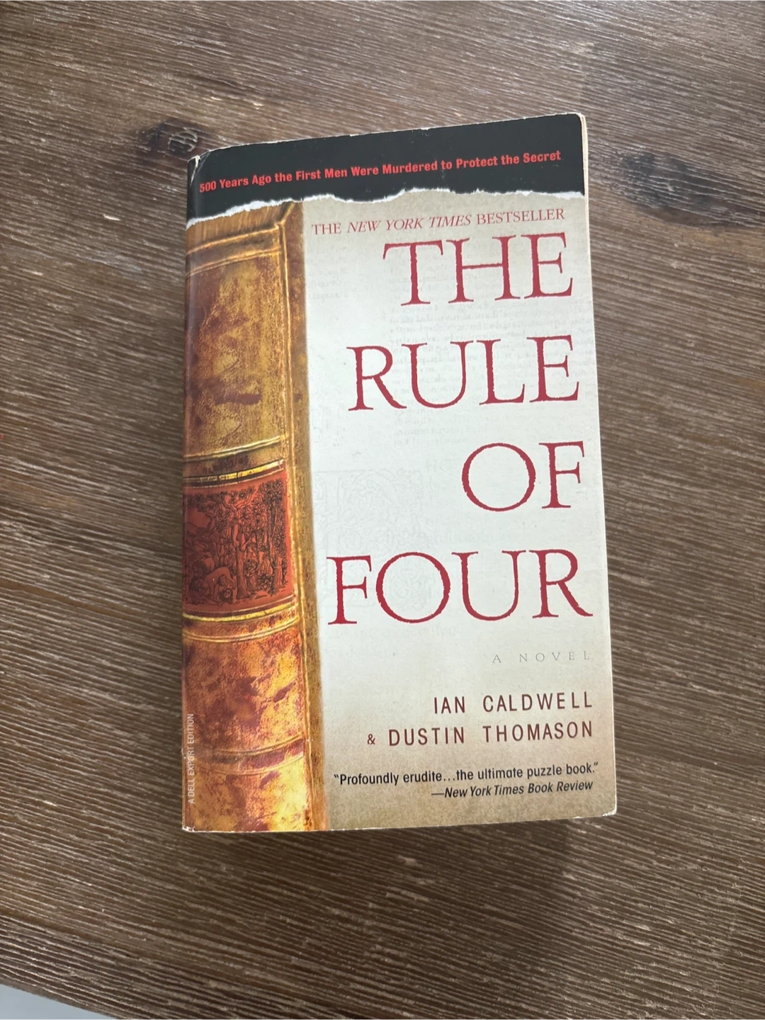 A New York Times Bestseller novel. The book is about protecting a secret that dates back 500 years. It's considered a profoundly erudite puzzle book. This is an A Dell Export Edition.