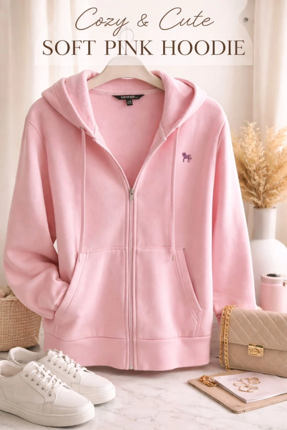 This soft pink zip-up hoodie is from George. It's a cozy and cute addition to any wardrobe! Made with comfortable material, it's perfect for casual wear.