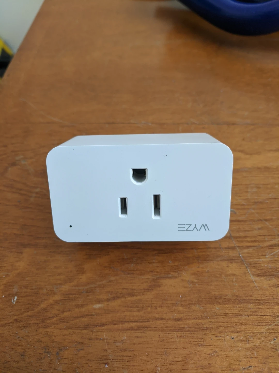 White Wyze Plug model WLPP1CFH. Connects to your home Wi-Fi for smart control. Rated for 120V~, 15A max.