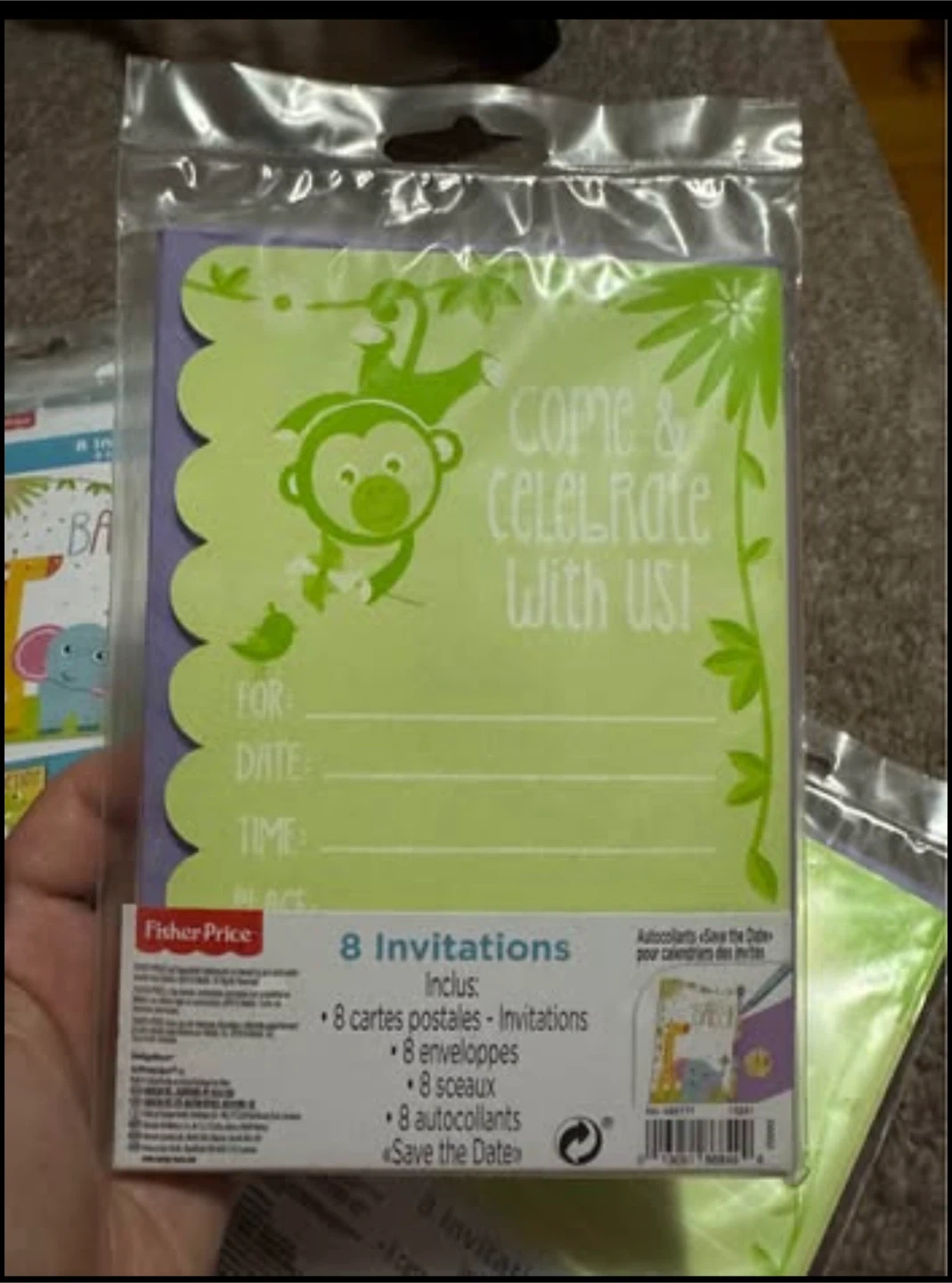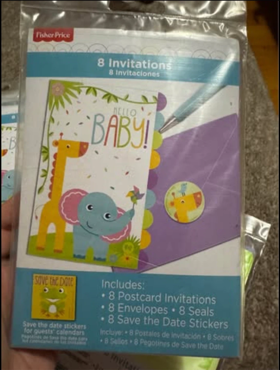 Get ready to celebrate with these adorable Fisher-Price baby shower invitations! This pack includes 8 postcard invitations, 8 envelopes, 8 seals, and save-the-date stickers. Perfect for inviting friends and family to welcome the new baby