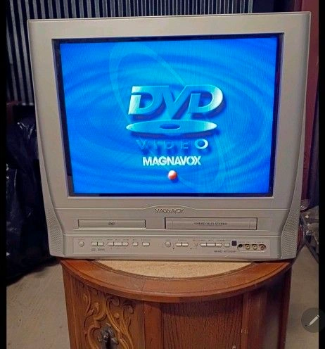 In overall good condition and works great. This Magnavox 20-inch SDTV is perfect for playing old gaming systems and most media. It has a built-in DVD and VHS player, capable of playing VHS tapes, DVDs, CDs, SVCD, and MP3 CDs. The 20-inch flat picture tube offers a clear, clean image with less glare. Features include multi-angle viewing, resume, and track programming.