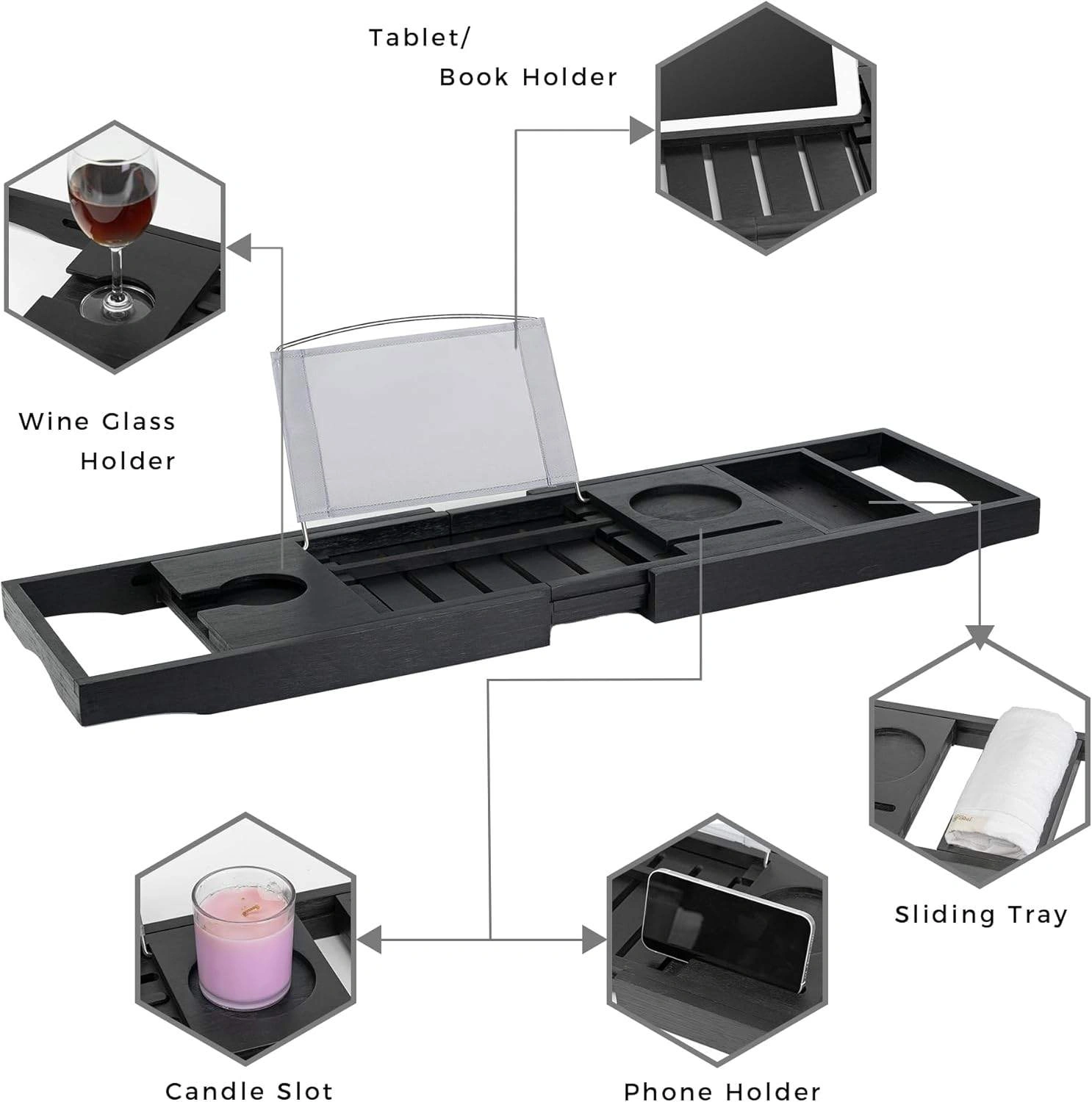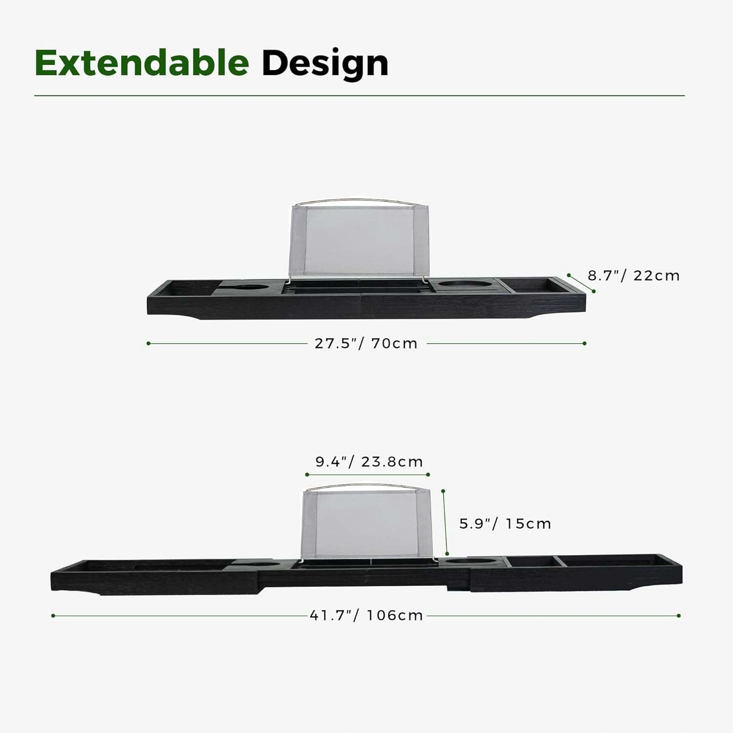 Adjustable Bamboo Bathtub Tray Caddy - Black