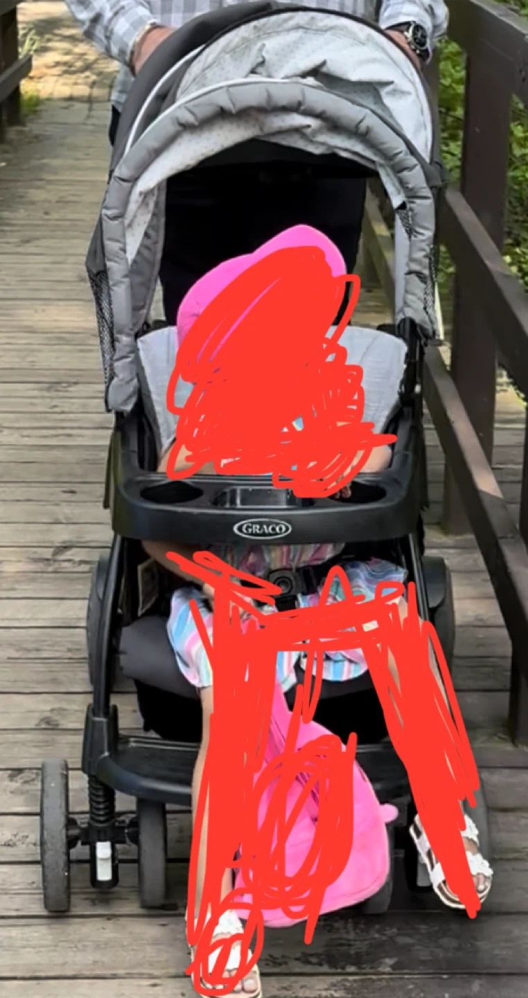 This is a Graco double seats stroller in black and grey. It has a comfortable padded seat with a 5-point harness. Easy to manoeuvre for everyday use!