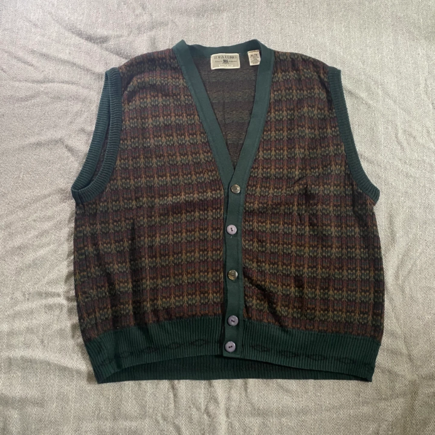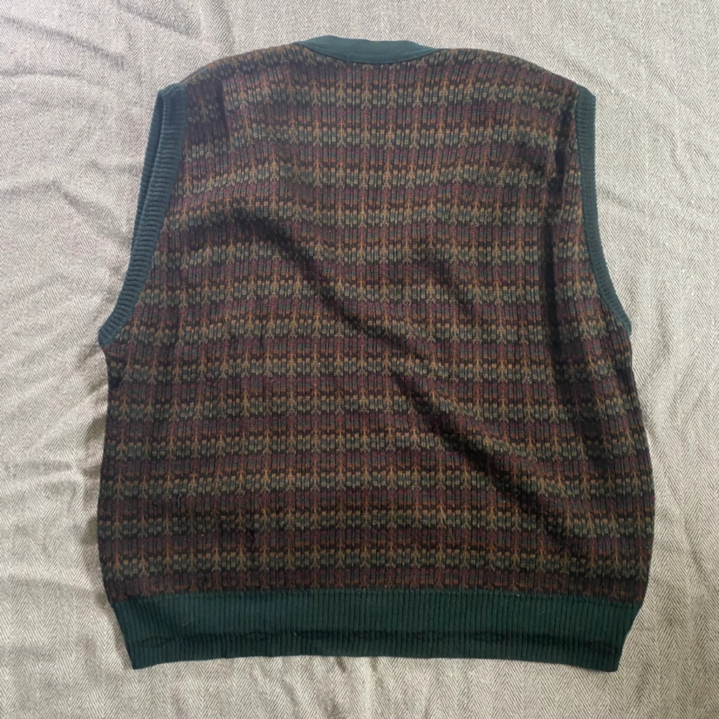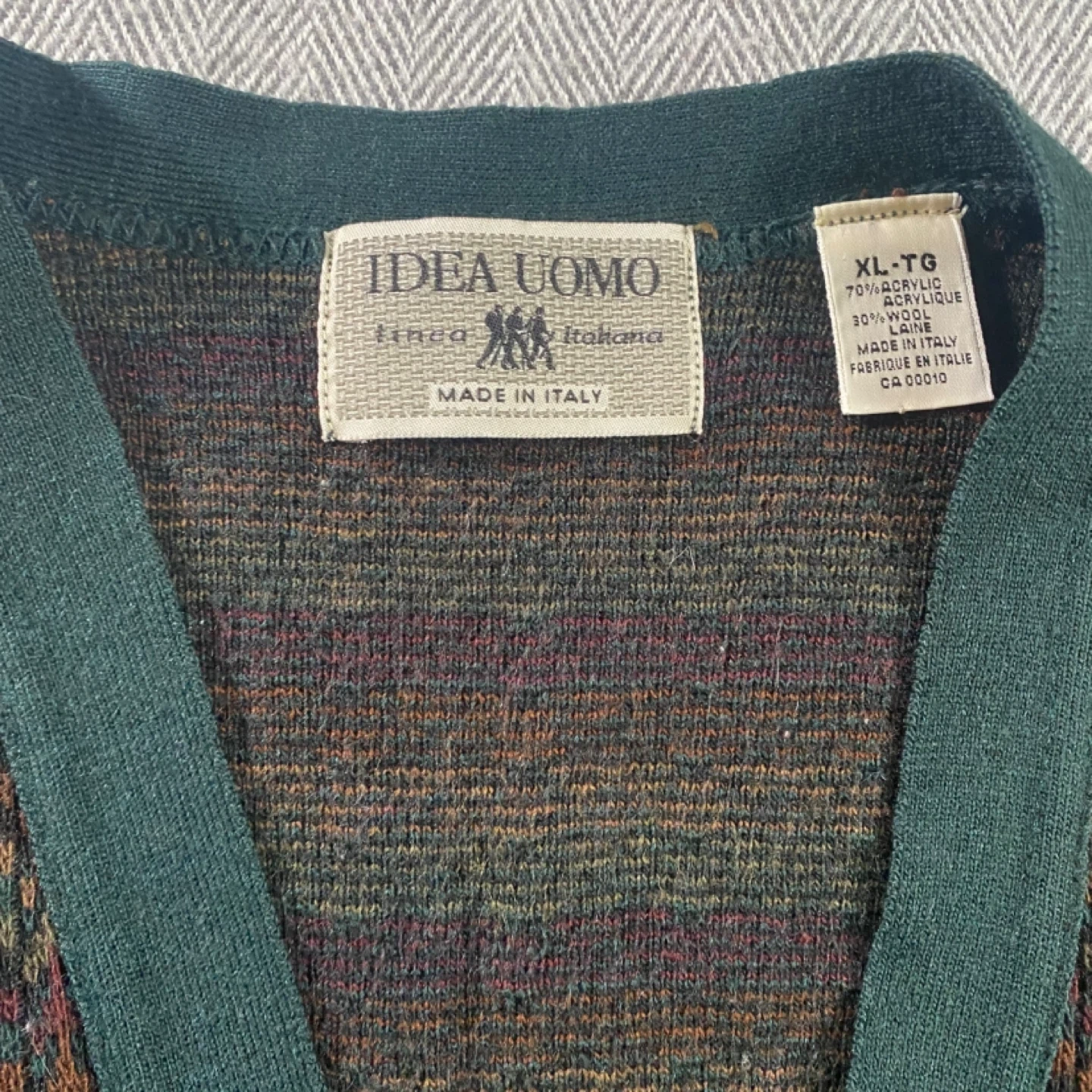 Idea Uomo V-neck sweater vest in size XL-TG. It's made from 70% acrylic and 30% wool. Made in Italy. Great for layering over a shirt!