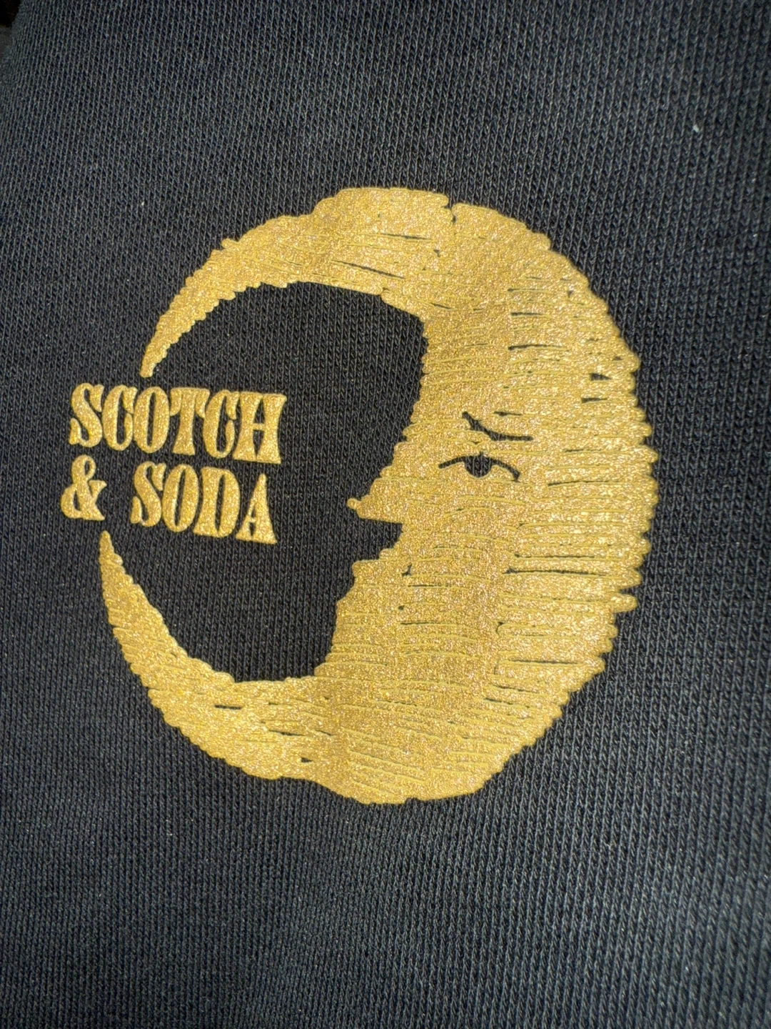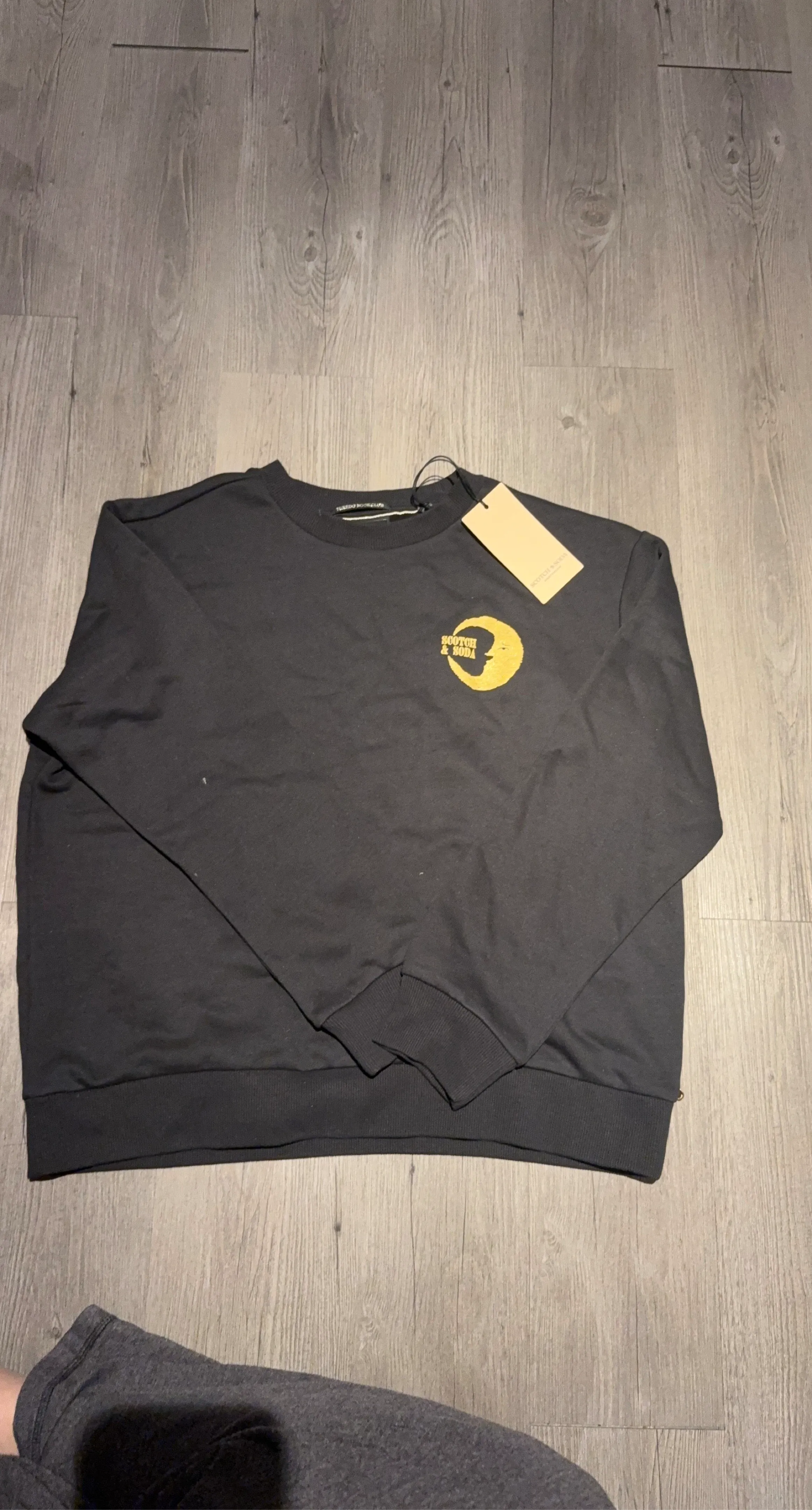 NWT Black crewneck sweatshirt from Scotch & Soda Amsterdam (Tuxedo Bookclub) with a moon graphic on the front chest and “check out anytime” on the back. New with tags. Machine wash cold. Size M.