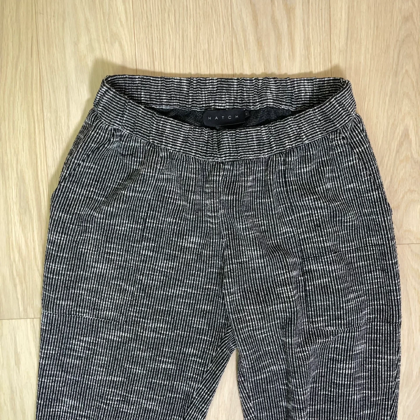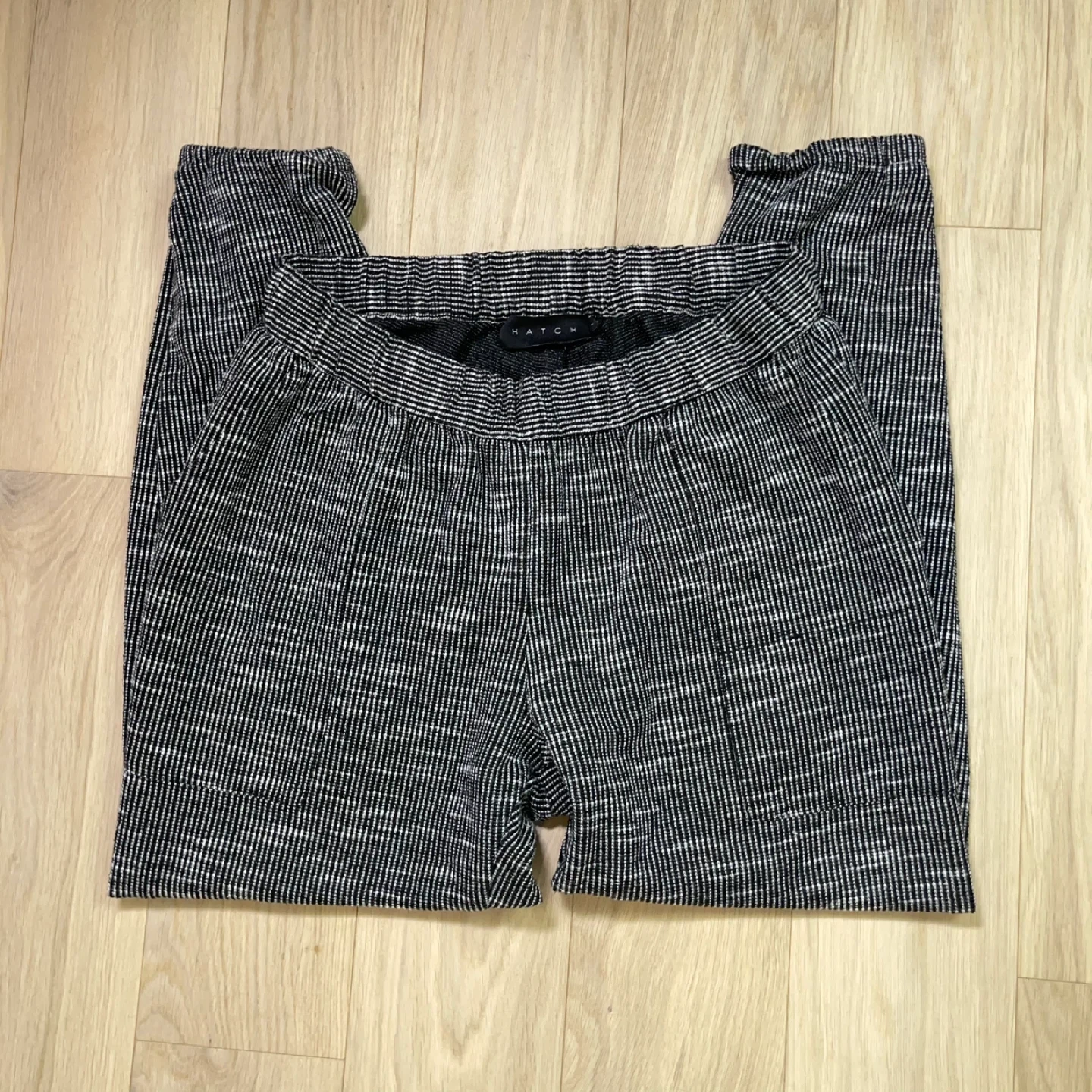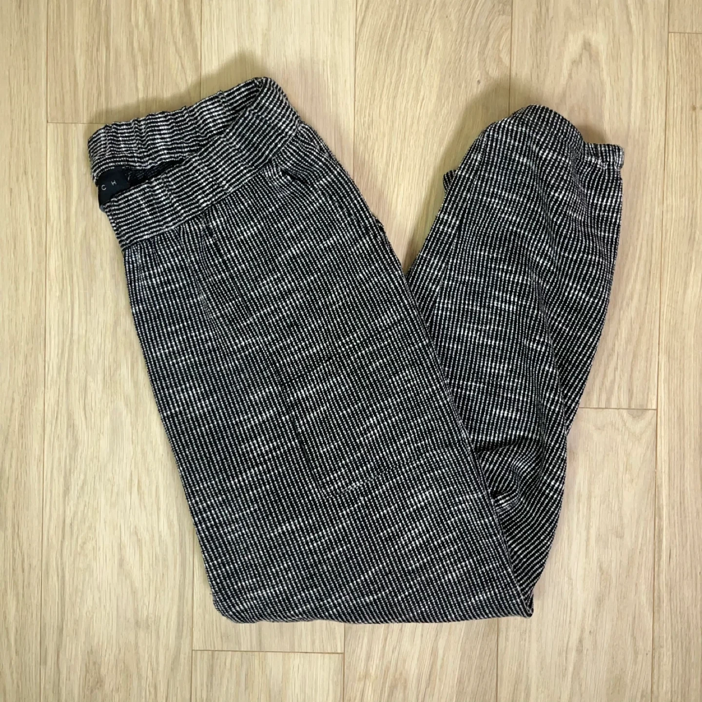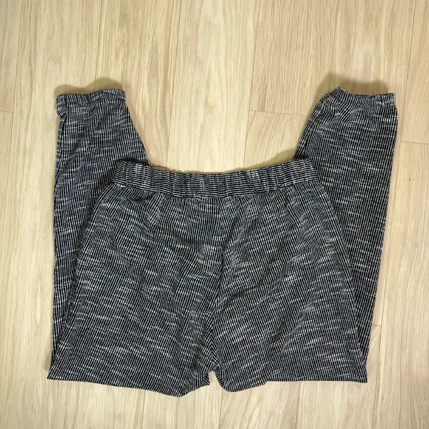 These are not basic sweats — the subtle grid/stripe weave gives them a refined, boutique feel that reads more “Anthro minimal” than athletic.