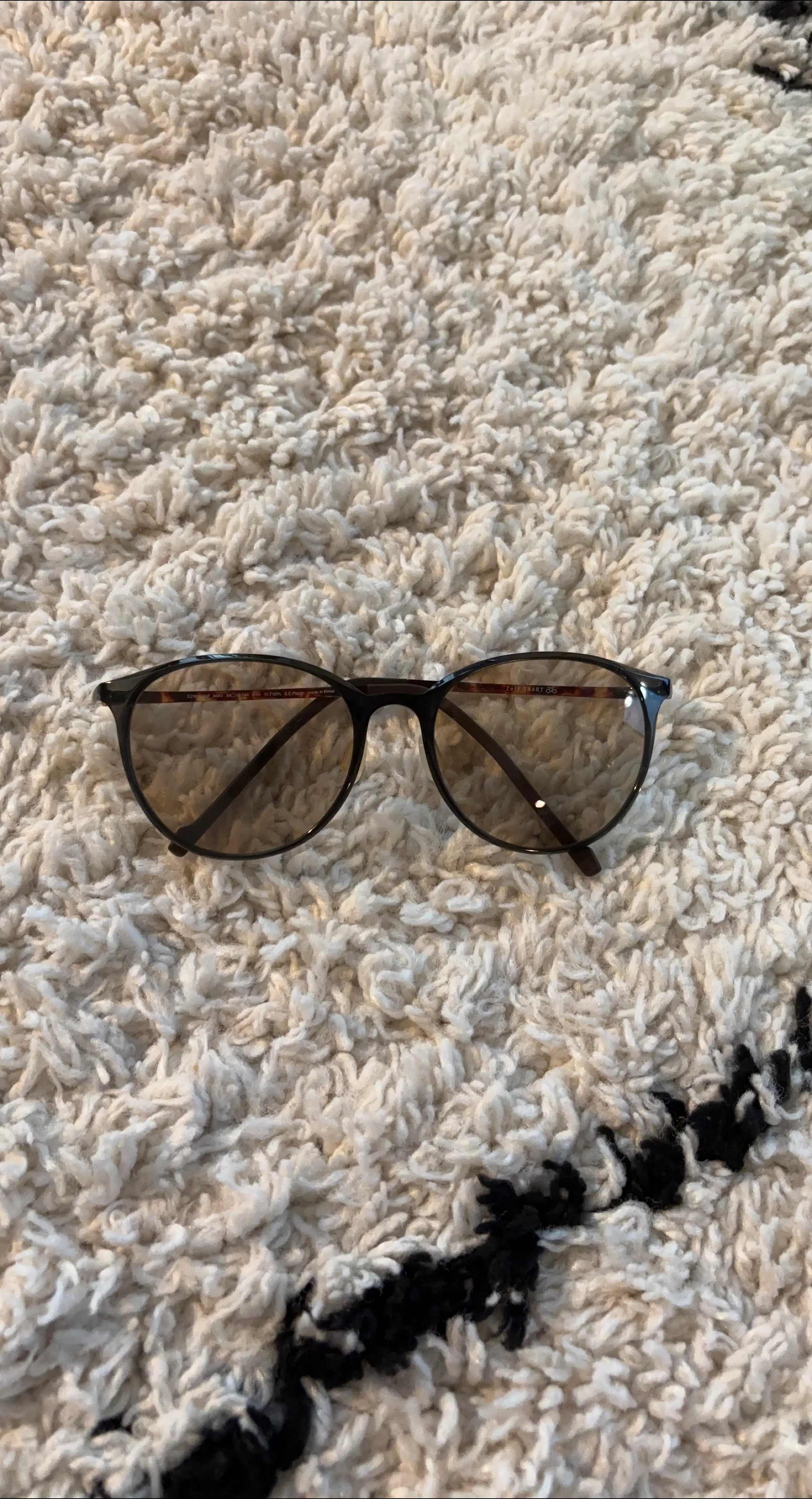 These sunglasses are from Zoff, a popular Japanese eyewear brand. Sunglasses with dark frames. Oval lenses with a brown tint. The earpieces are slim and delicate. Wear these on a sunny day to feel relaxed and comfortable. Made in Korea.