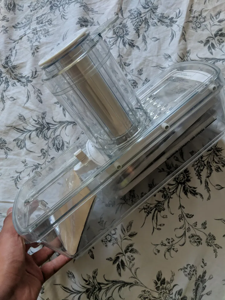 Selling a mandoline slicer! It's in great condition and ready to help you prep your veggies with ease. It features a container to catch the slices, making cleanup a breeze. Perfect for anyone who loves to cook!