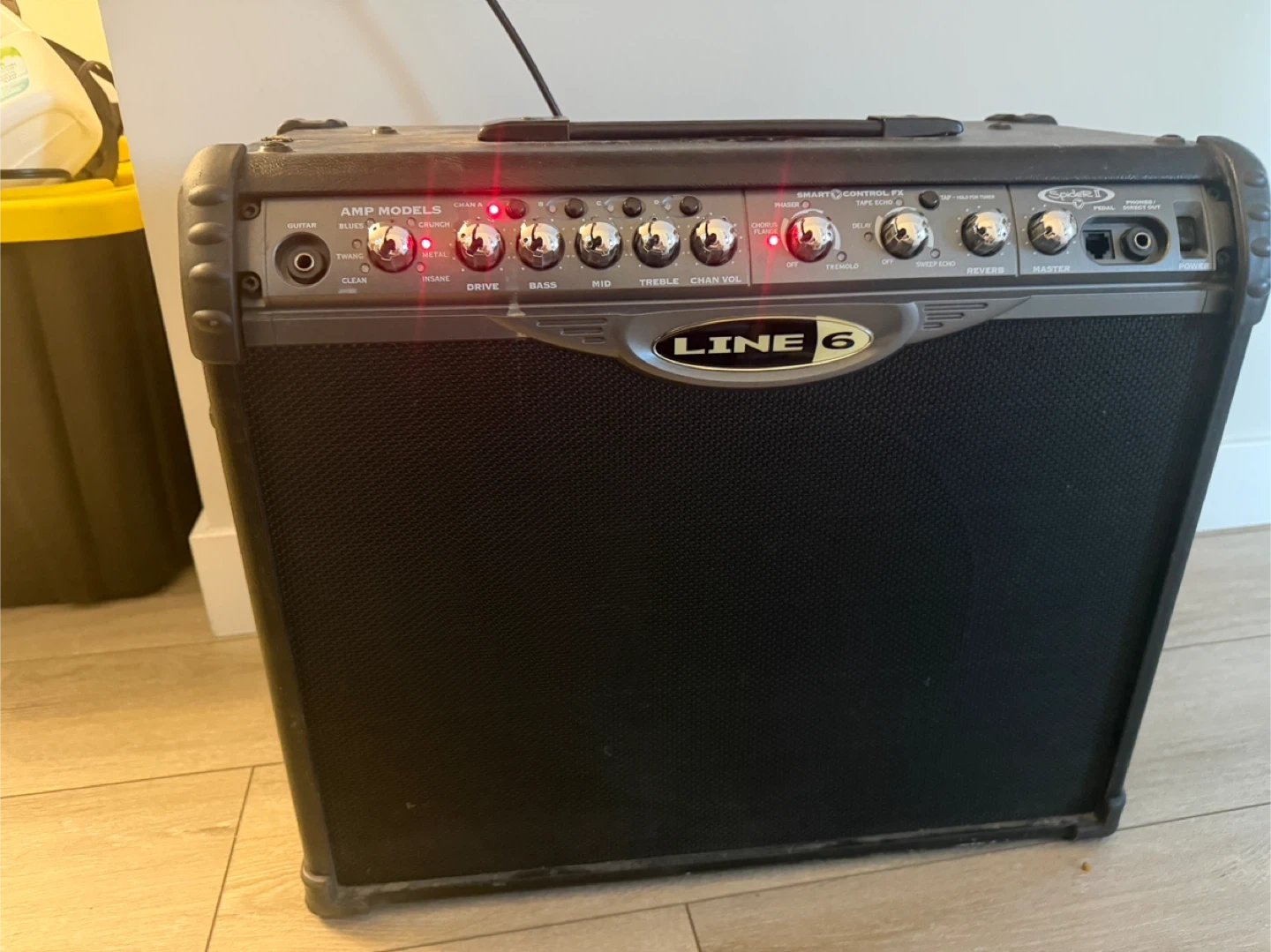 Different tones and effects including the 6 modelling channel: Clean, Twang, Blues, Crunch, Metal, and Insane. Smart Control FX allows you dial in the intensity of Chorus Flange, Phaser and Tremolo effects as well as Delay, Tape Echo, and Sweep Echo.