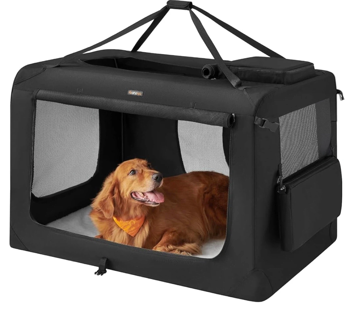 Foldable Dog Transport Box, XXXXL, Oxford Fabric, Mesh, Breathable, Portable, Metal Frame, with Handles, Pockets, 122 x 79 x 79 cm, Black