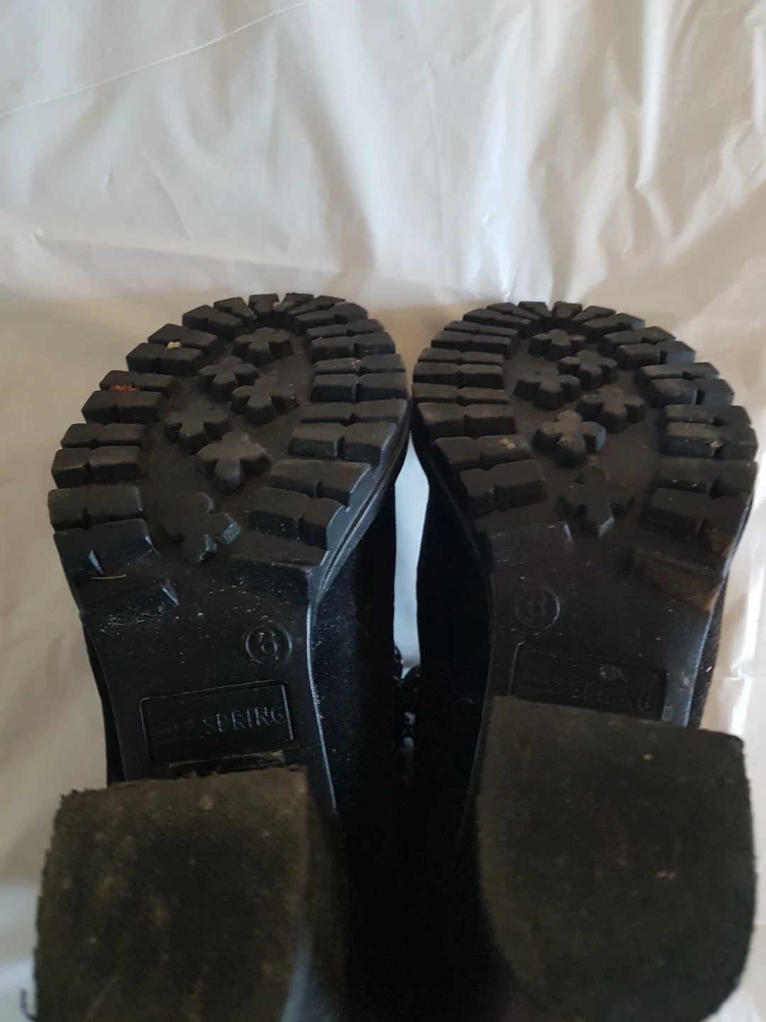 Black suede-like boots from Spring Step. These feature a chunky heel and lace-up front with a cosy knitted cuff. Boots are US size 6, EUR 36, UK 3.