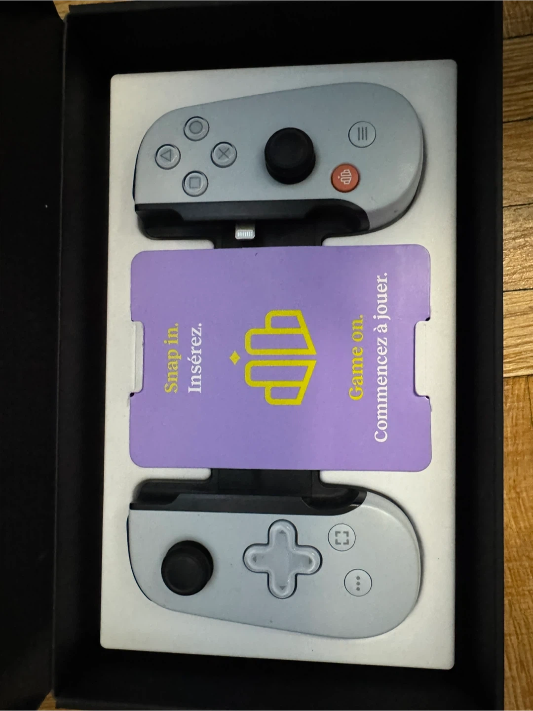 This is the PlayStation Backbone controller designed for iPhones. It's compatible with PS Remote Play for a seamless gaming experience. Snap it in and start gaming on the go!