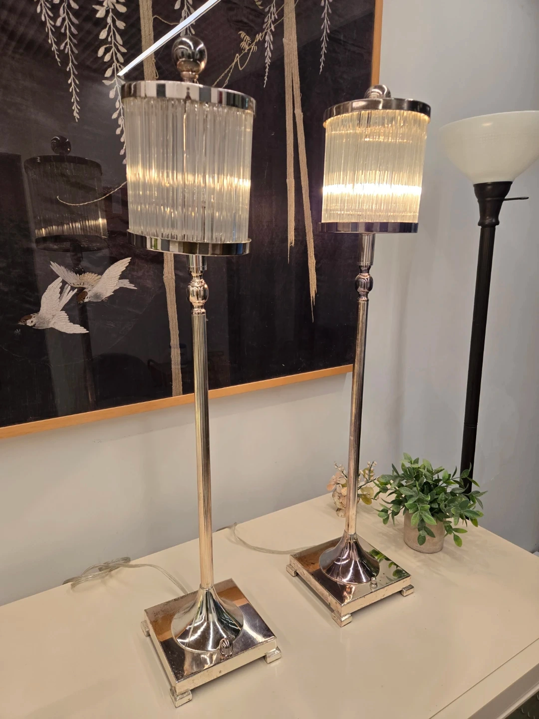 Pair Of Silver Table Lamps With Crystal Shades *Price For Both*