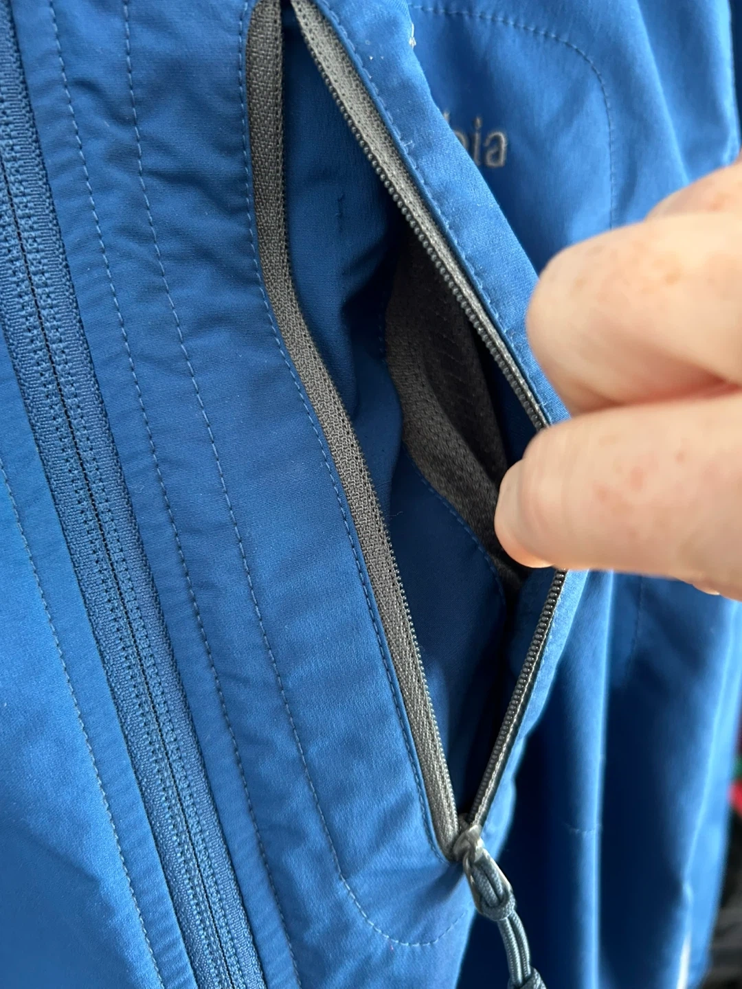 Columbia Sportswear Company jacket in a vibrant blue colour. It's a men's size large. Features adjustable velcro cuffs and multiple zippered pockets for secure storage. Made in Vietnam.