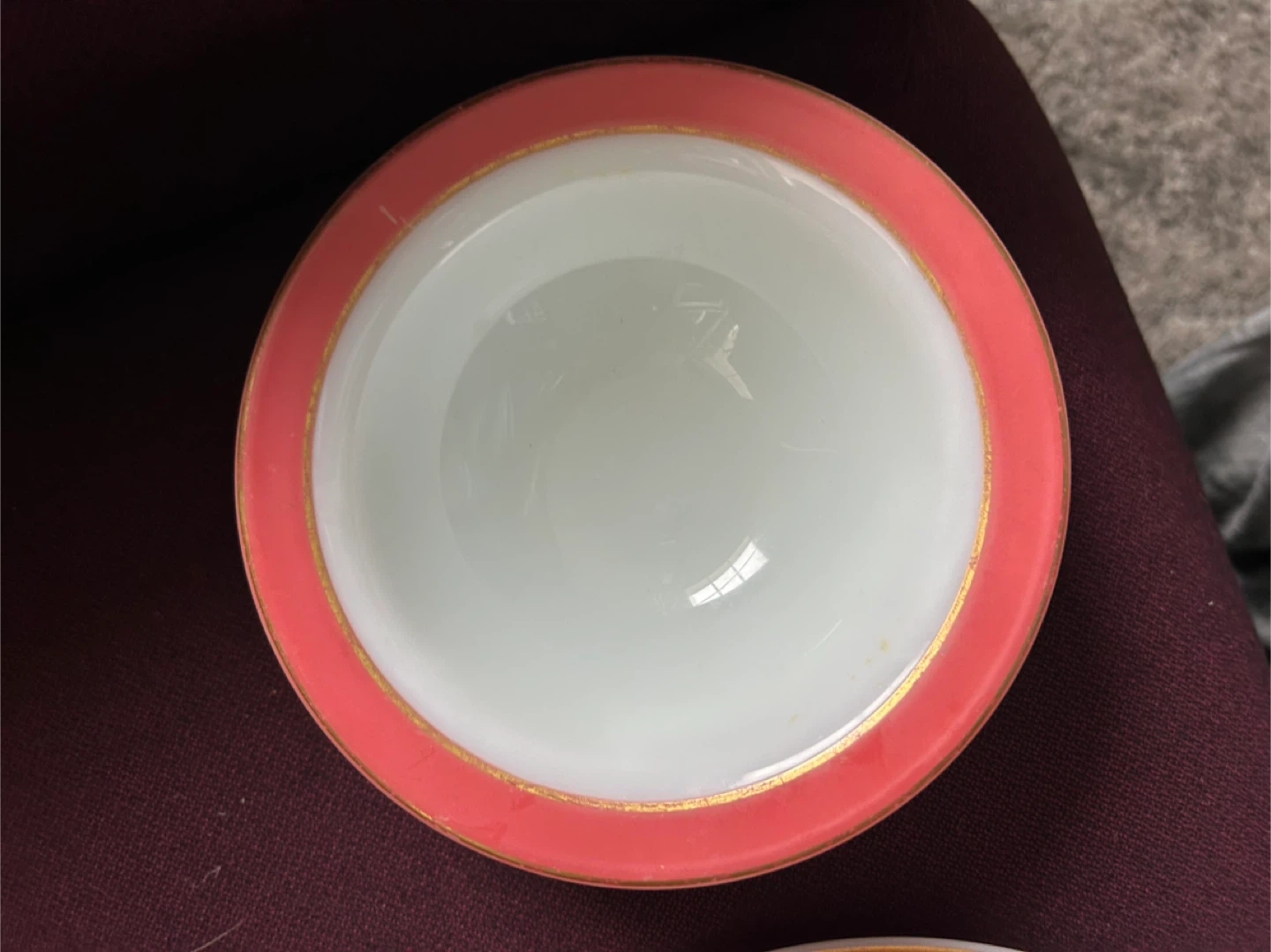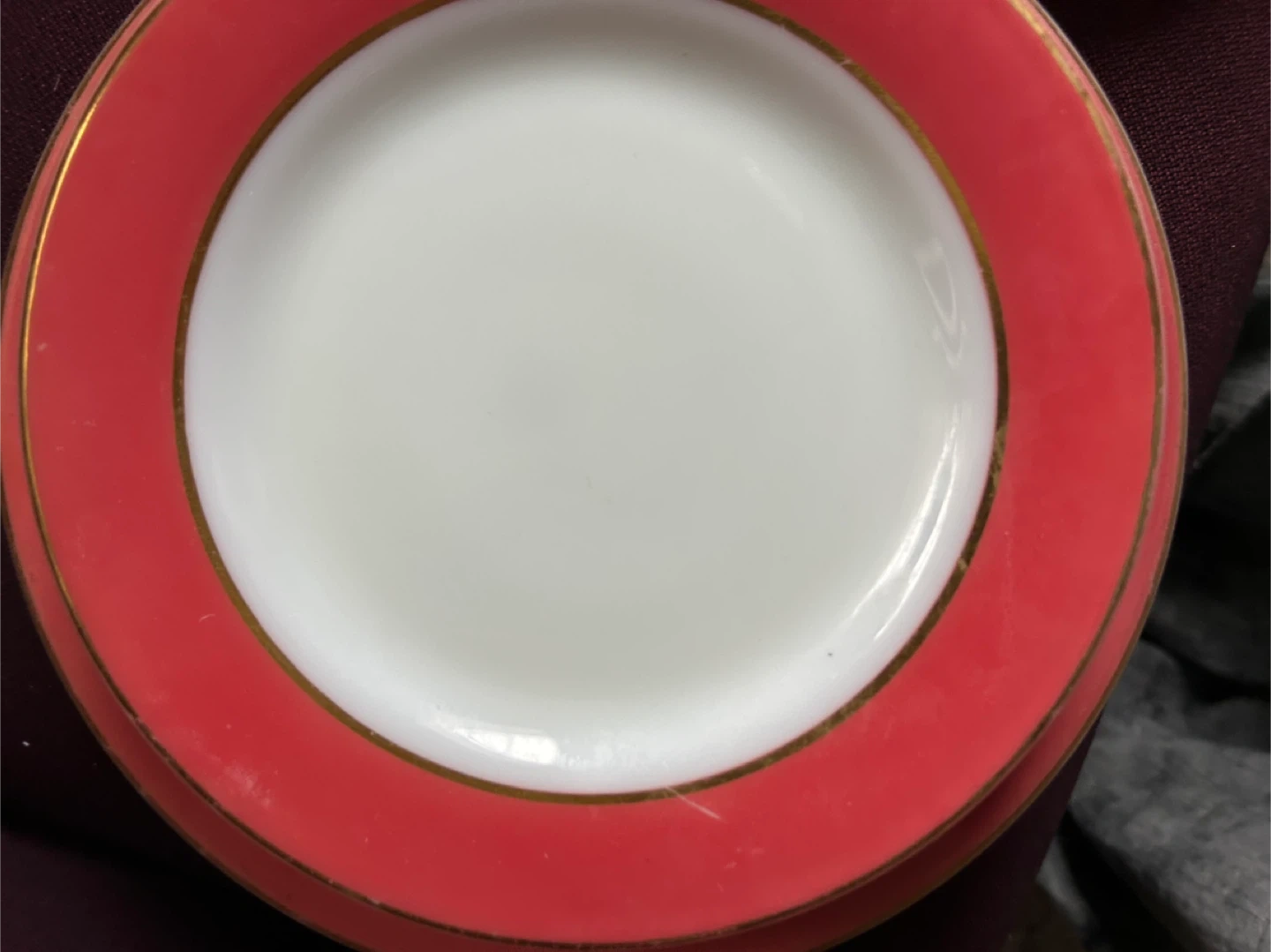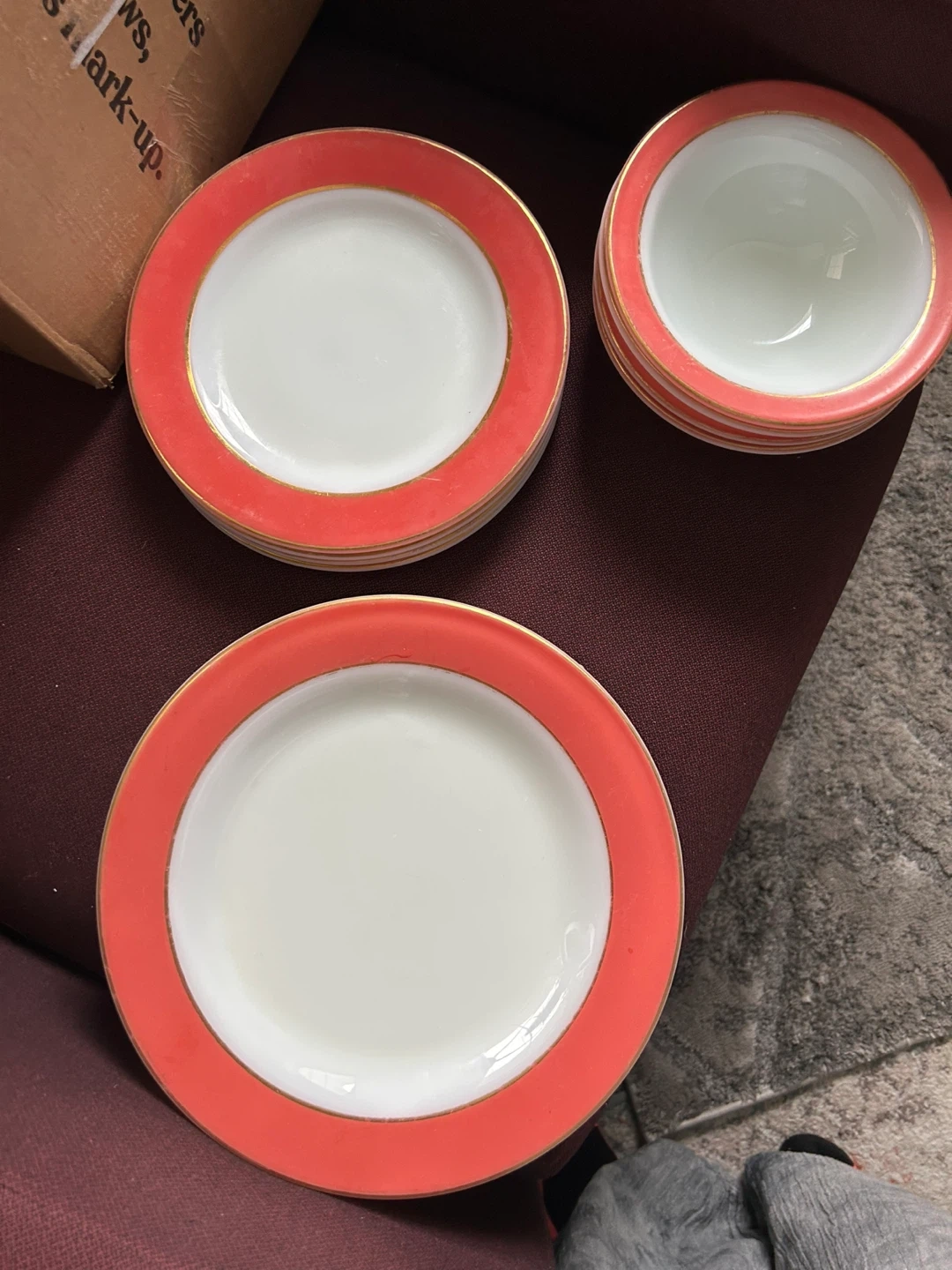 Coral Rimmed Bowls and Plates Set Vintage Pyrex