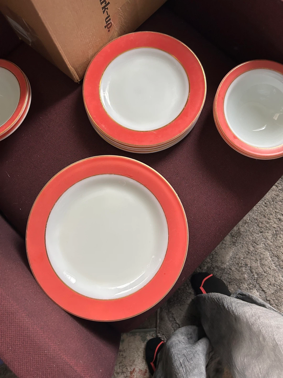 Coral Rimmed Bowls and Plates Set Vintage Pyrex
