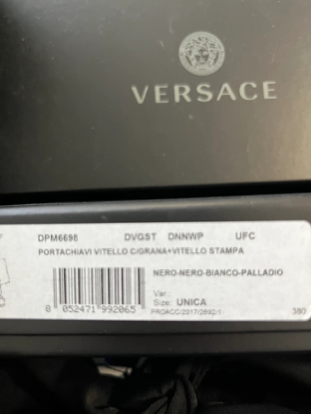 Selling a few Versace leather keychains. They are brand new and come with the original box. Available in Nero-Nero-Bianco-Palladio (Black), Navy, and Turquoise. The size is UNICA.