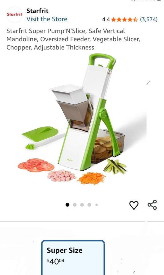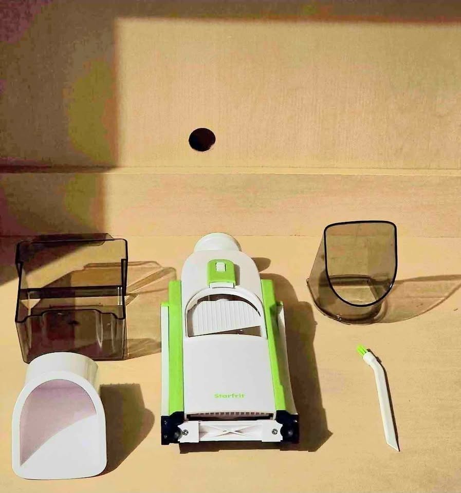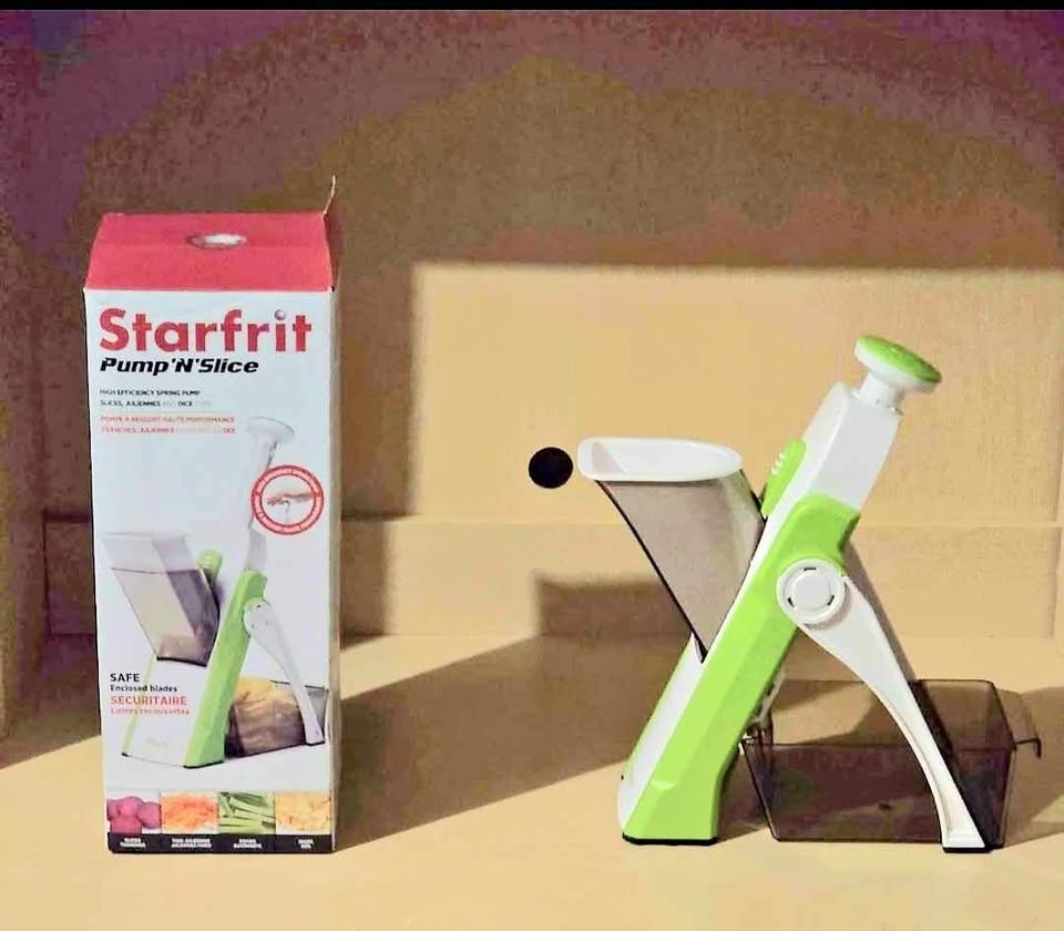 Starfrit Super Pump’N’Slice, Safe Vertical Mandoline, Oversized Feeder, Vegetable Slicer, Chopper, Adjustable Thickness.