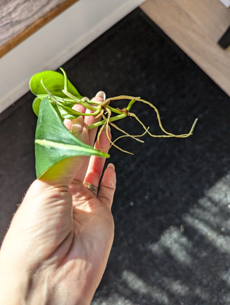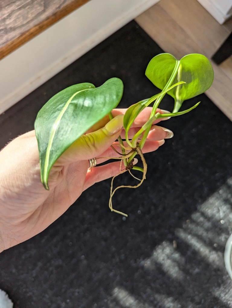 Cutting of a Philodendron Silver Stripe with roots. Ready to plant!