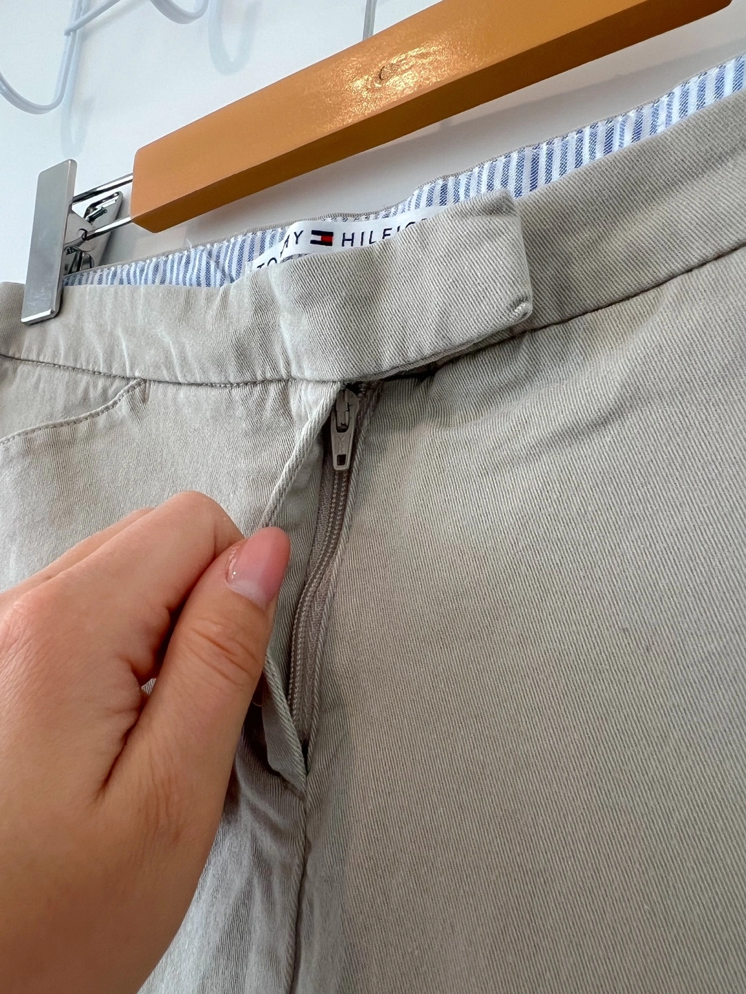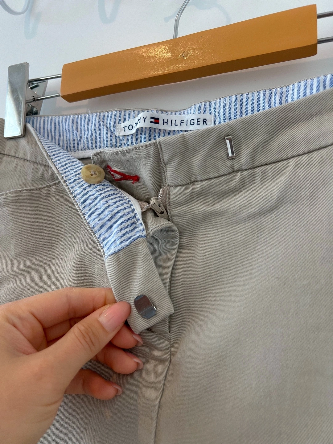 Very pretty, aesthetic Vintage Tommy Hilfiger Mini Skirt in beige colour with 2 pockets, with zip and button closure.
