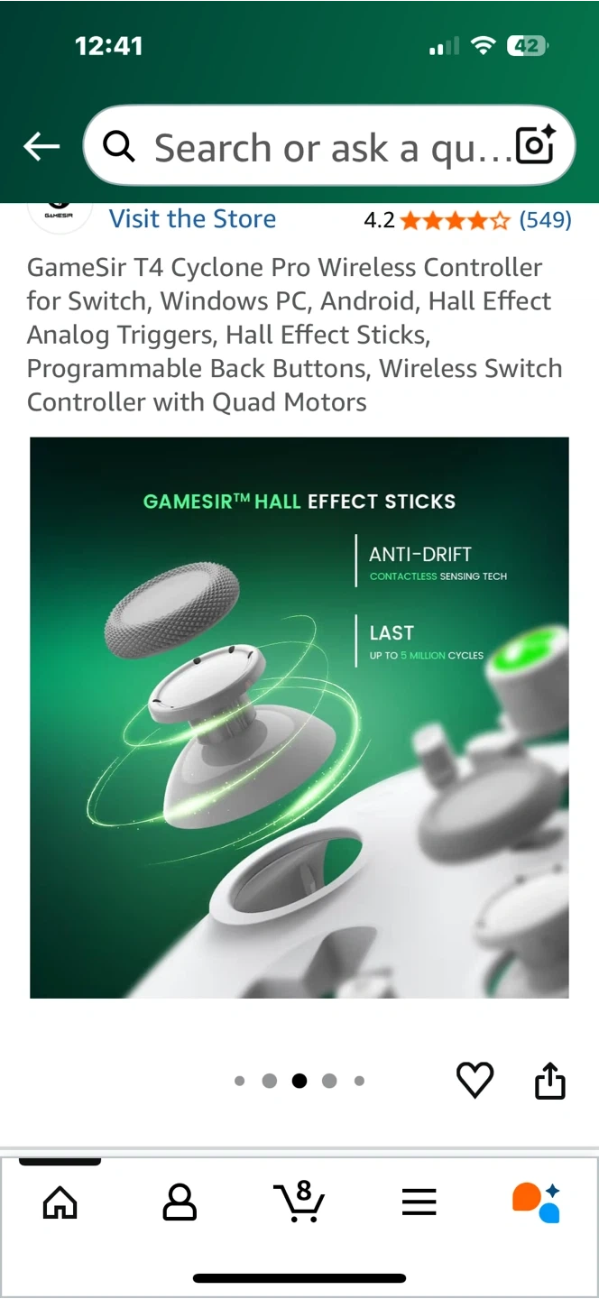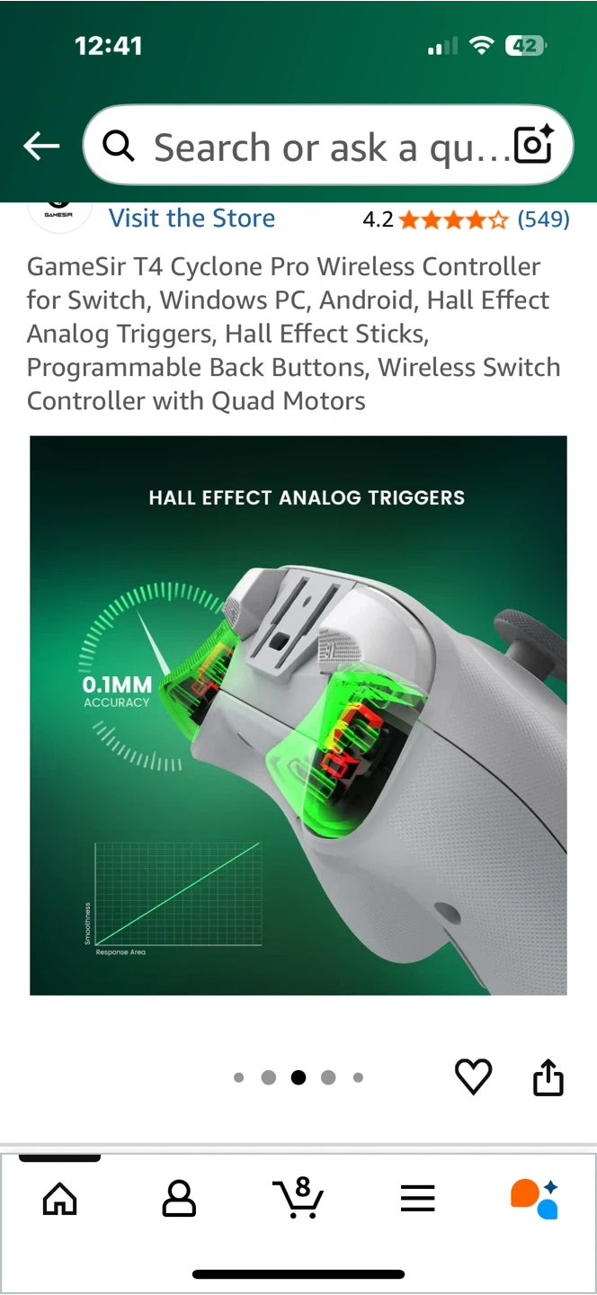 Selling a GameSir T4 Cyclone Pro Wireless Controller in white! It's compatible with Switch, Windows PC, and Android. It features Hall Effect Analog Triggers and Sticks, plus programmable back buttons. This controller also has Quad Motors for enhanced feedback