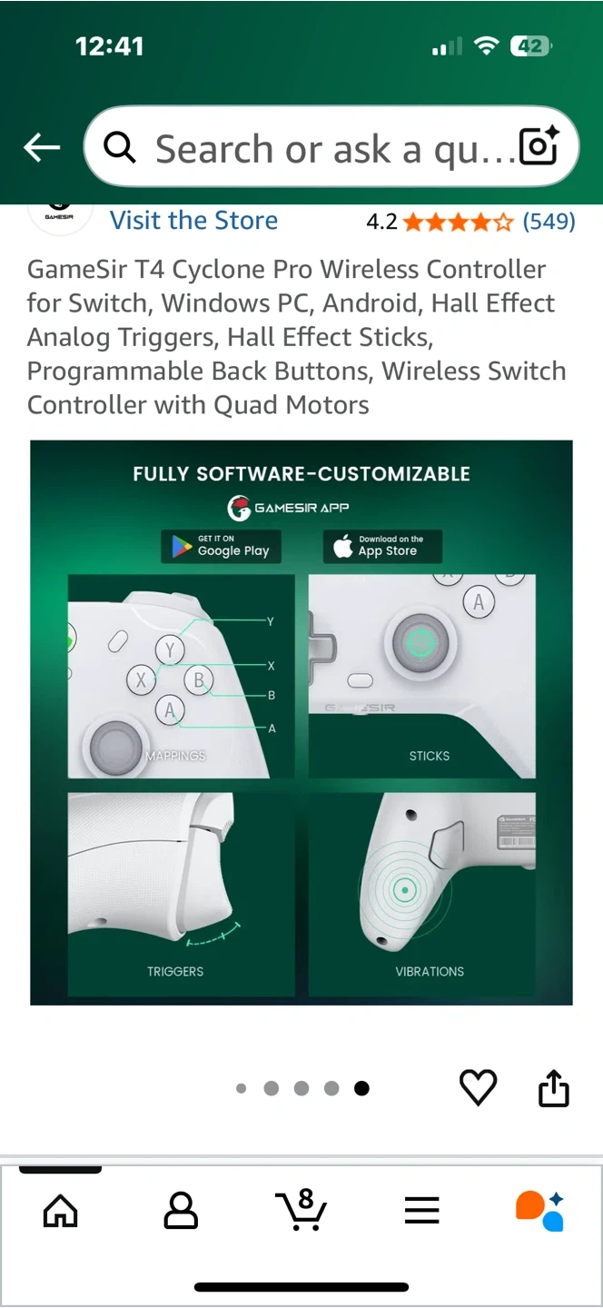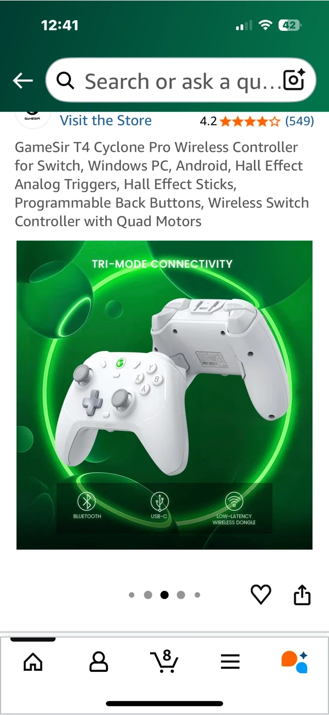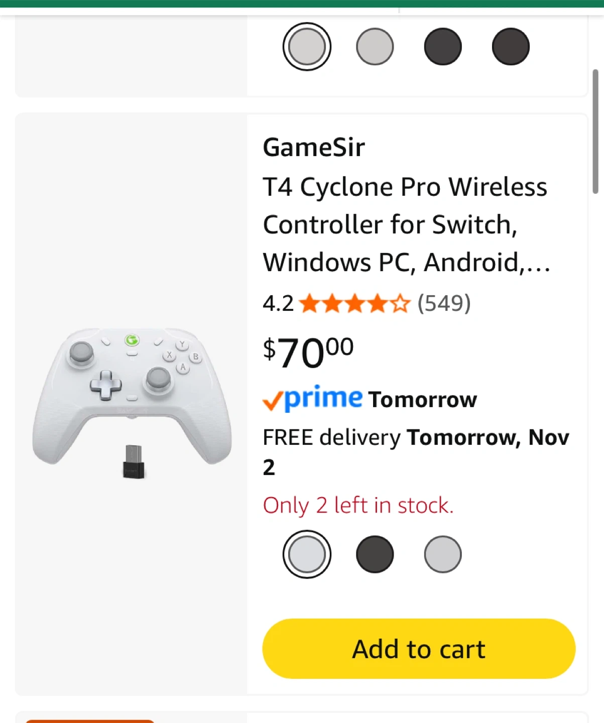 Selling a GameSir T4 Cyclone Pro Wireless Controller in white! It's compatible with Switch, Windows PC, and Android. It features Hall Effect Analog Triggers and Sticks, plus programmable back buttons. This controller also has Quad Motors for enhanced feedback