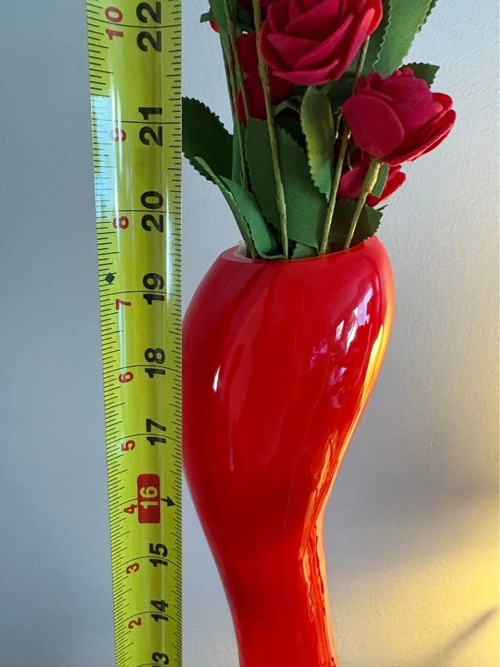 Distinctive red, faux roses are included. Approximately 19.5 inches tall. An inexpensive addition to your home decor. Pickup only in Burlington. (Pinedale Ave) Price is firm. Thank you.
