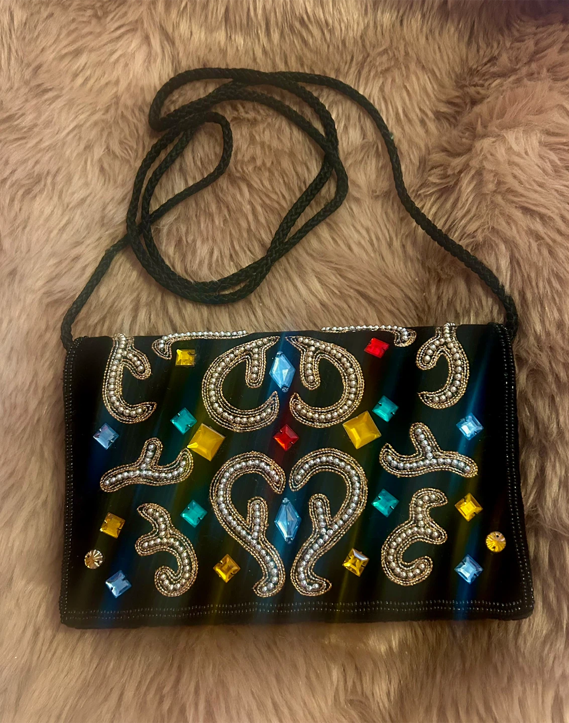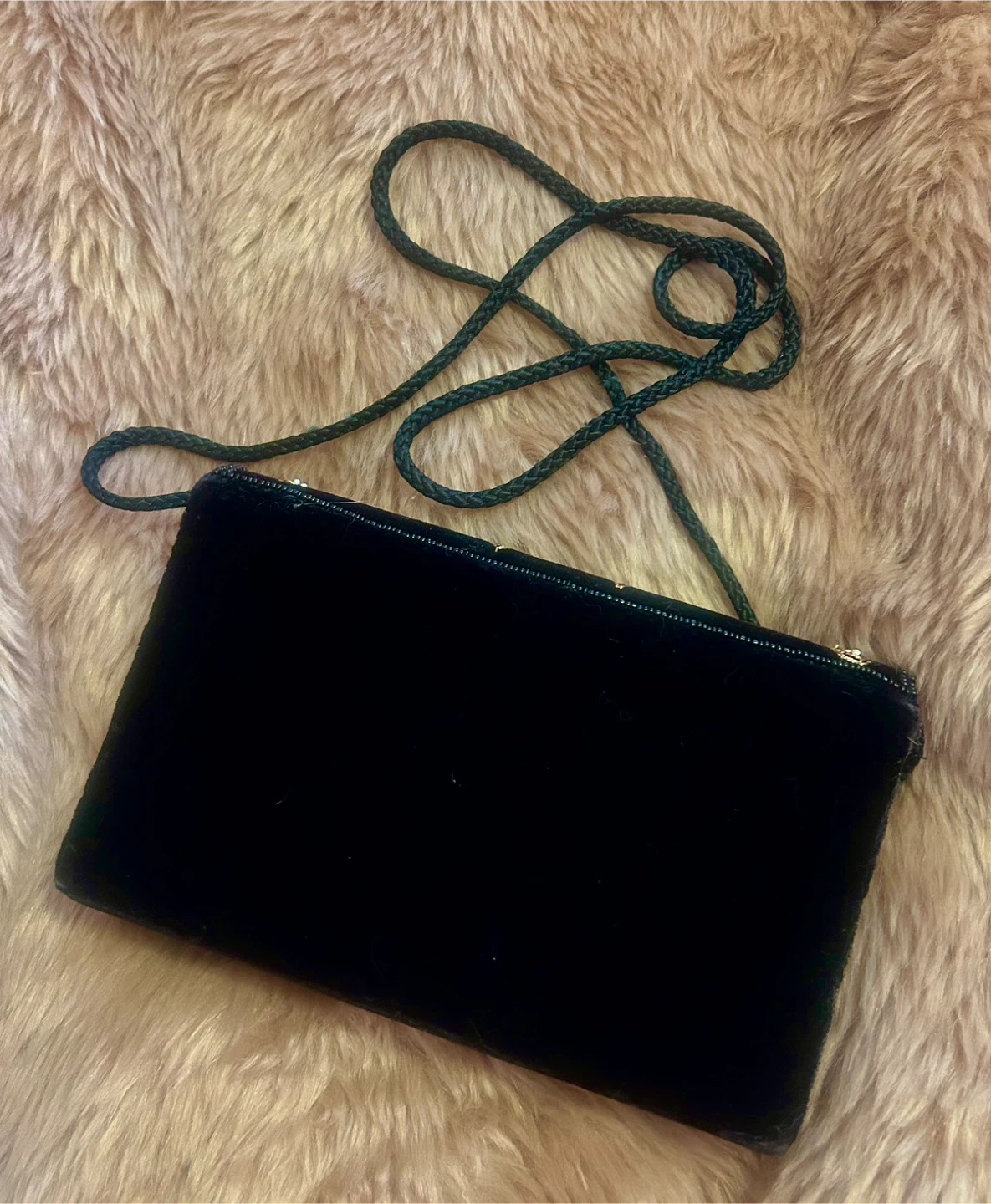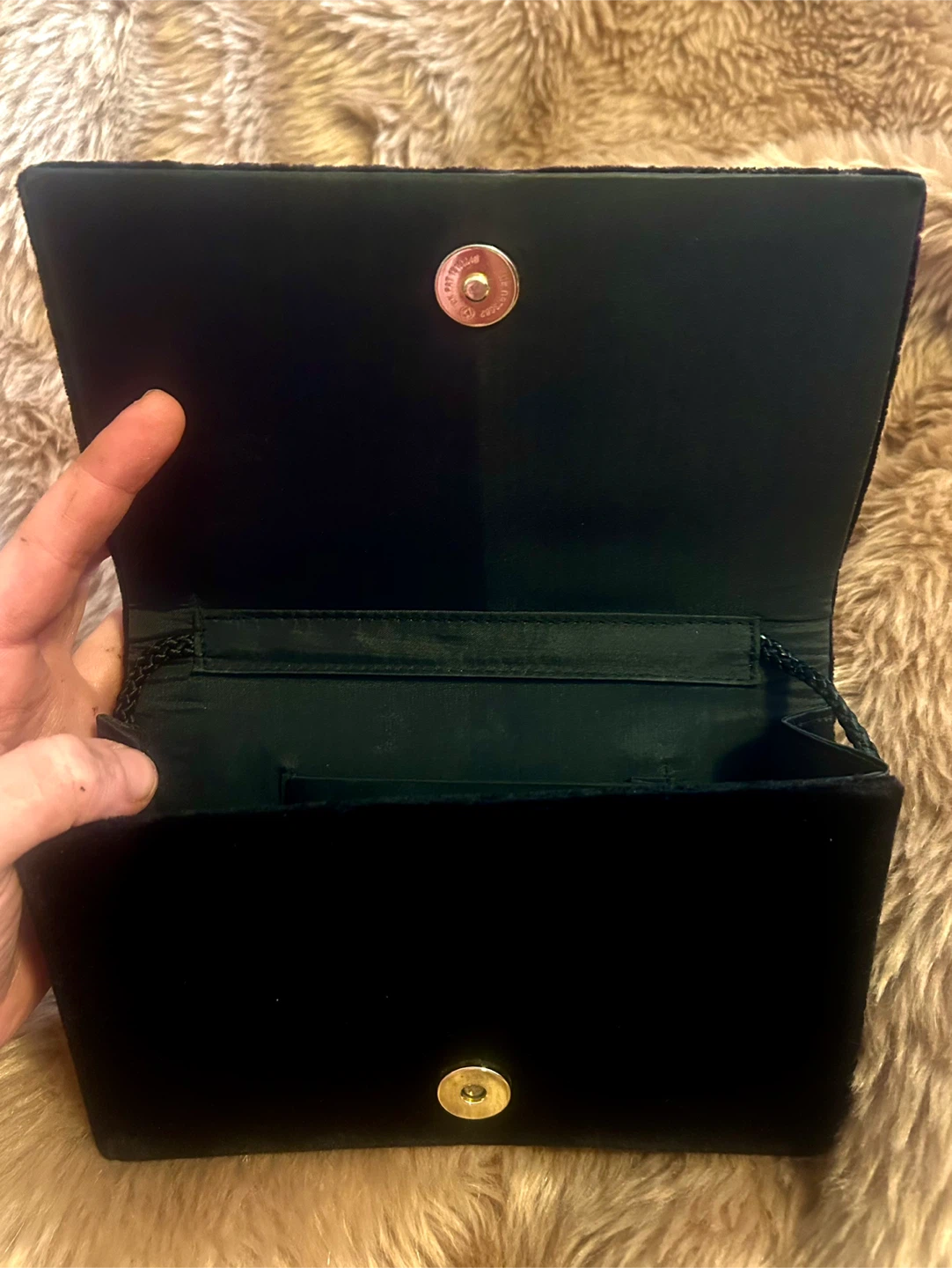 MARY FRANCES 90S VINTAGE BLACK VELVET BEADED GEM BAG