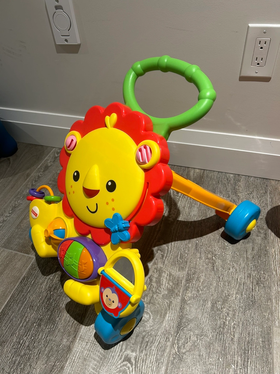 Fun colourful Fisher-Price baby walker. Features a lion design, multiple activities, and a sturdy handle. Great for helping little ones learn to walk.