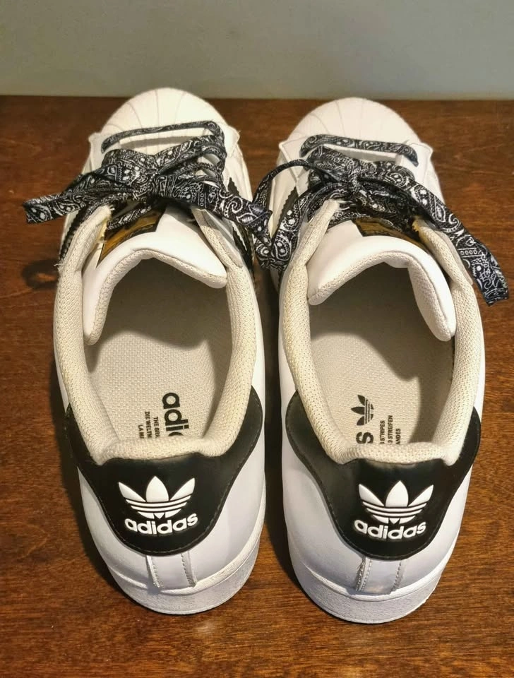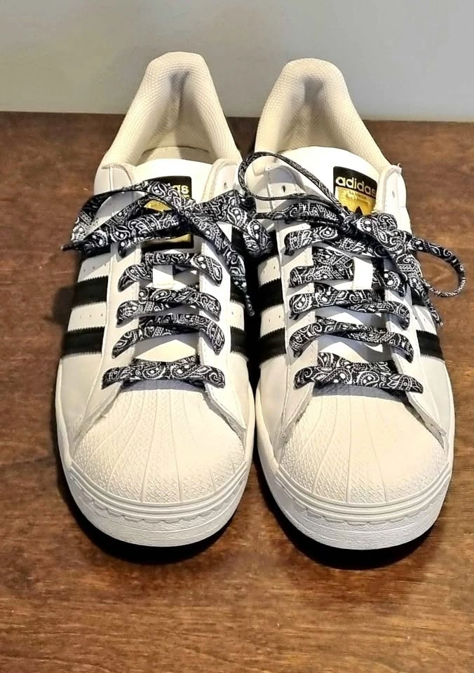 Adidas Superstar Sneakers White Black Bandana Laces Size 10 Men