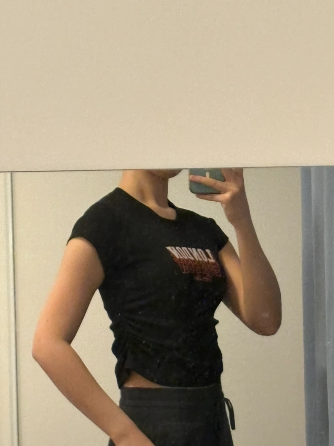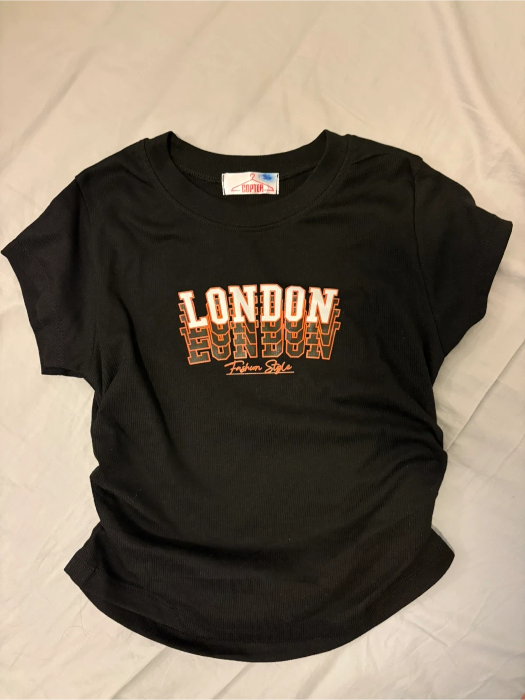 Buy & SellBlack Rushed Side TeeBlack Rushed Side Tee$8Black t-shirt with "LONDON FUN & FASHION STYLE" graphic. It's a stretchy, ruched side tee.ConditionLike newWHERE TO MEETWellesley Subway StationView MapSELLERverifiedSashaDowntown Toronto1338 reviews0 chats·0 favorites·2 viewsSEND CHAT TO SELLERHi Sasha! I’m interested in your listing.Hi Sasha! I’m interested in your listing.Get the Karrot app to chatSign In to chat
