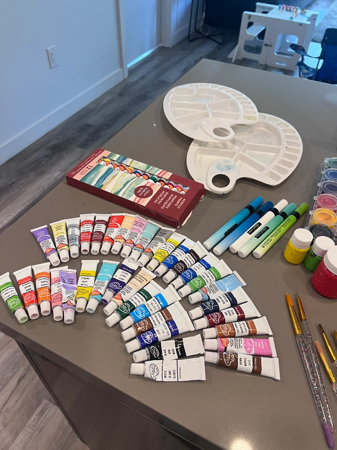 Acrylic Paint Set with Brushes & Palettes