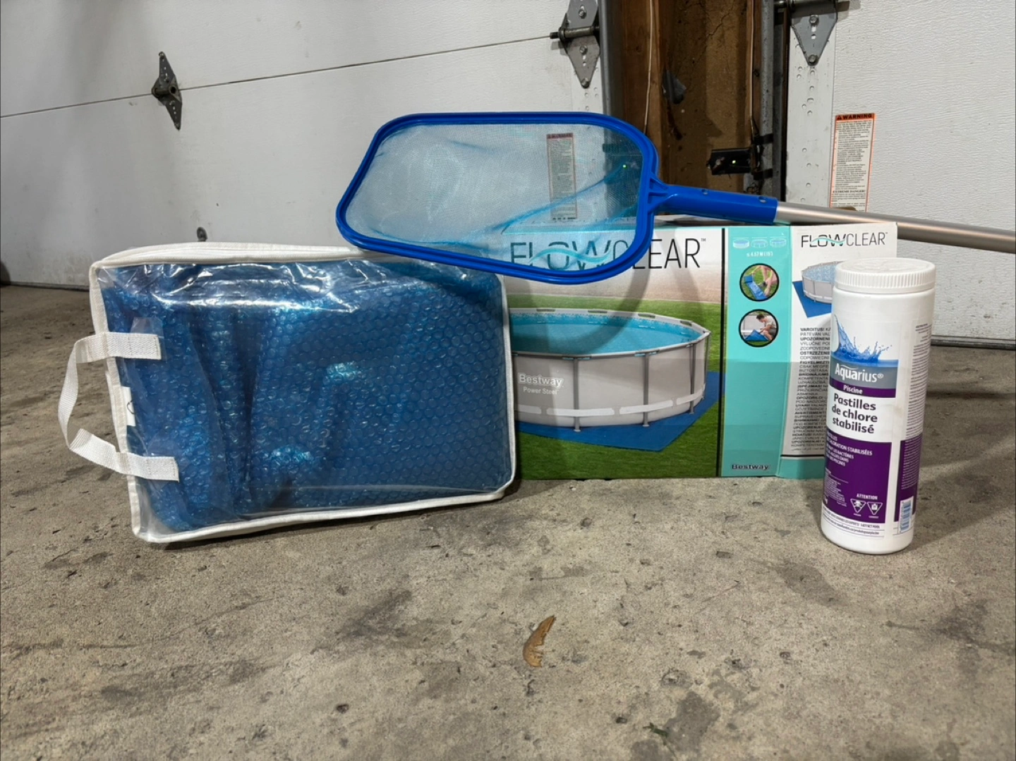 Selling a Bestway Flowclear 12ft Power Steel Frame Above Ground Pool Set. It comes with the pool, cover, skimmer, and chlorine tabs to keep it clean. Perfect for summer fun in the backyard!