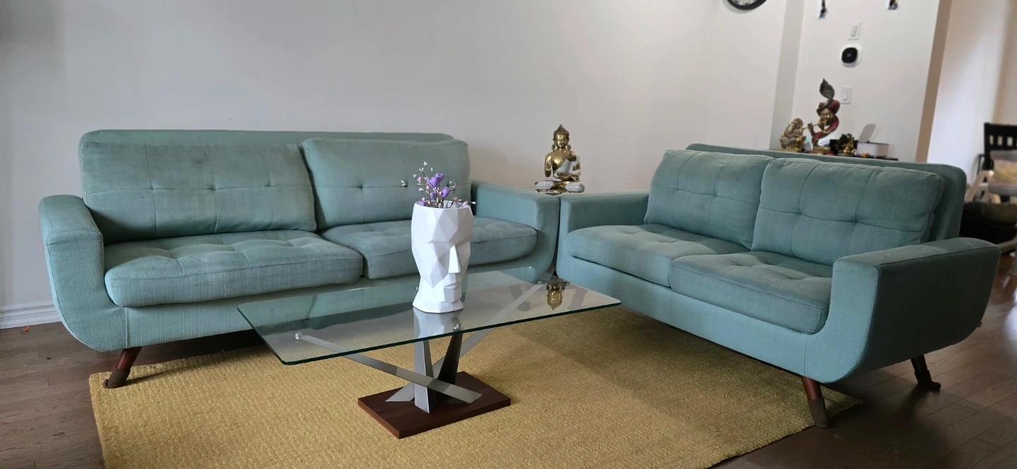 Teal Green Tufted Sofa and Loveseat Set