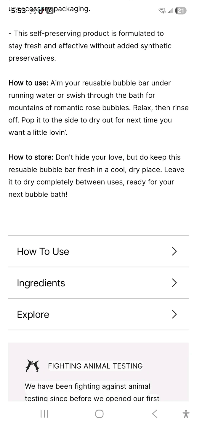 This heart-shaped bubble bar creates romantic rose bubbles. It's formulated to stay fresh and effective without added synthetic preservatives. Aim it under running water or swish through the bath to make mountains of rose bubbles. Leave it to dry completely between uses, ready for your next bubble bath!