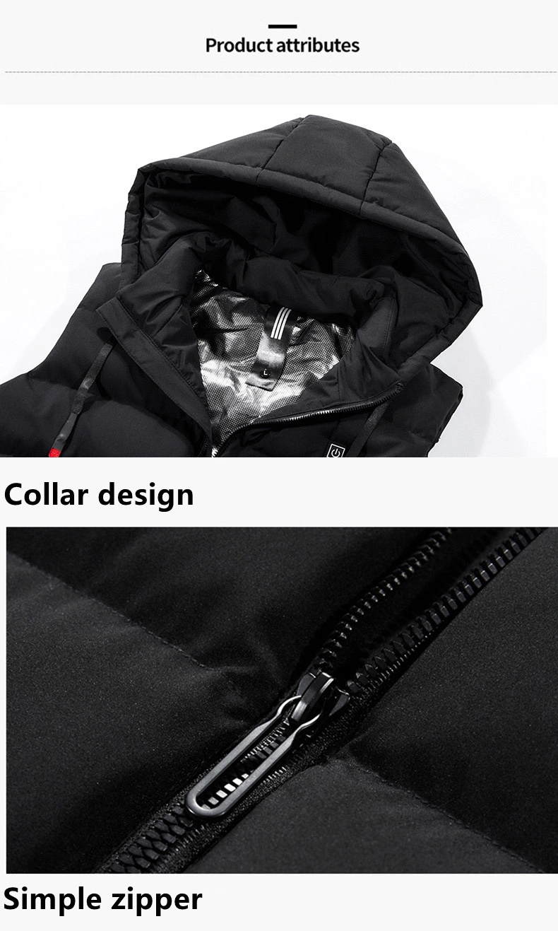 Look good and stay warm in this premium quality soft and fashionable new design 11 zones heated hoodie vest. Heats up the neck, back and front areas. Thick and extra warm with drape down relaxed design around waist so it’s comfortable and yet still keeping heat in effectively. Keep yourself comfortable and warm for the cold winter days. Great for playing or working outside. Skiing, construction and warehouse workers, camping, motor biking, golfing, fishing, working at film sets. Scratch resistant fabric. Strong zipper. Thermal lining will keep heat in to keep you extra warm. Warms up in 1 minute. 3 temperature settings: high 45 degrees , medium 35 degrees , low 25 degrees.