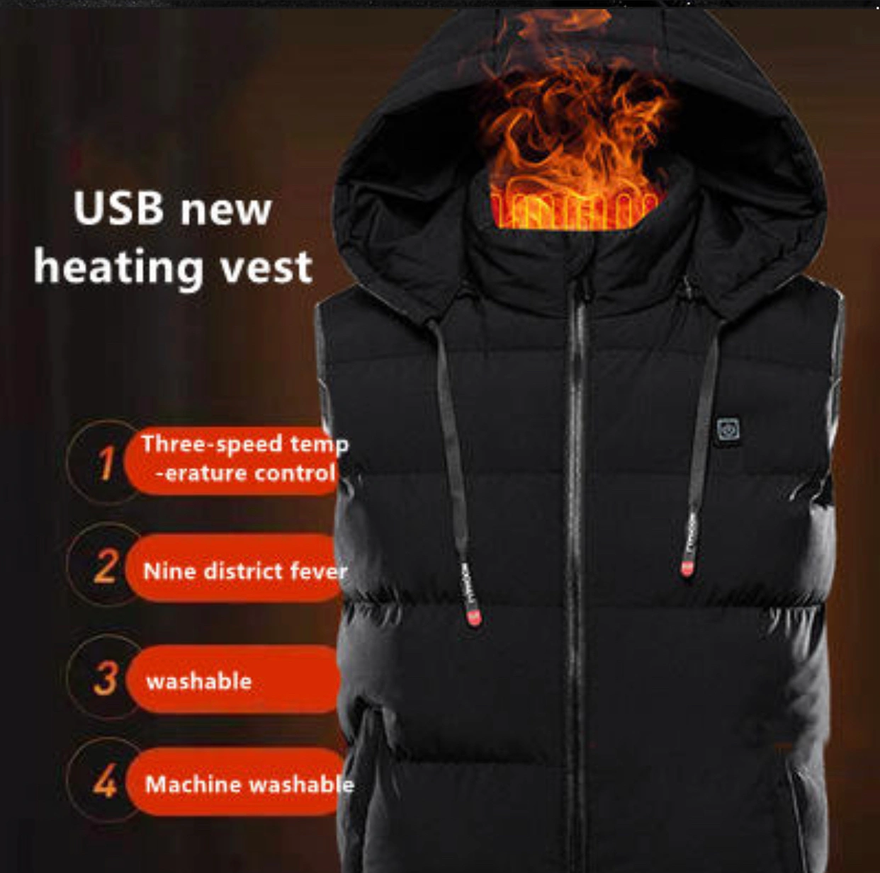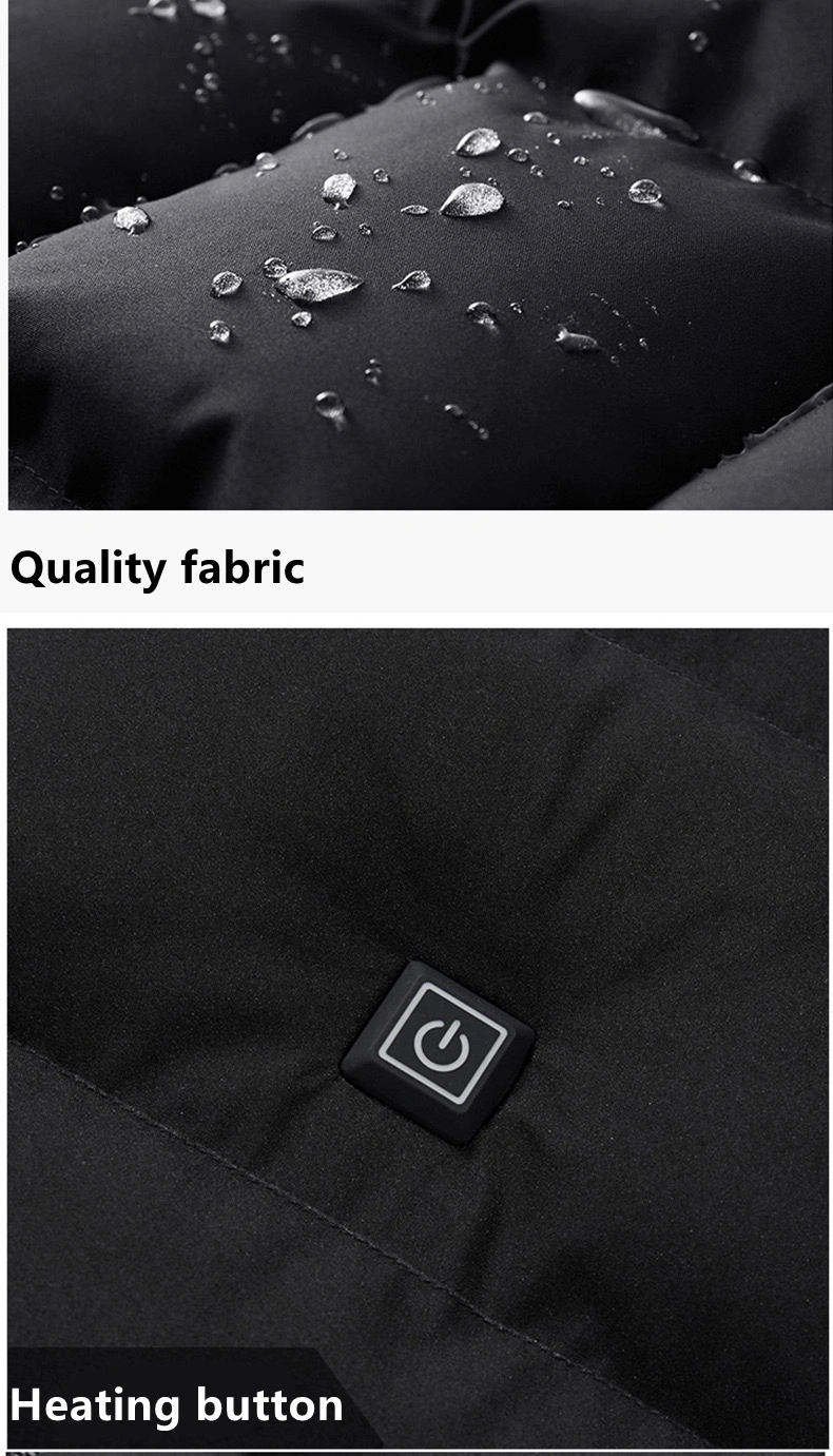 Look good and stay warm in this premium quality soft and fashionable new design 11 zones heated hoodie vest. Heats up the neck, back and front areas. Thick and extra warm with drape down relaxed design around waist so it’s comfortable and yet still keeping heat in effectively. Keep yourself comfortable and warm for the cold winter days. Great for playing or working outside. Skiing, construction and warehouse workers, camping, motor biking, golfing, fishing, working at film sets. Scratch resistant fabric. Strong zipper. Thermal lining will keep heat in to keep you extra warm. Warms up in 1 minute. 3 temperature settings: high 45 degrees , medium 35 degrees , low 25 degrees.