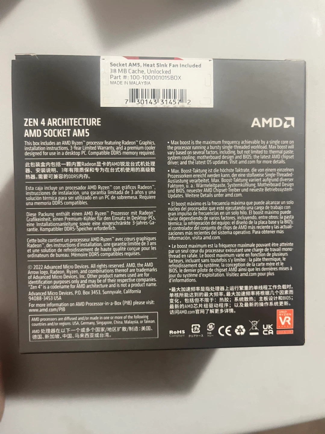 This AMD Ryzen 5 7600 processor features 6 cores and 12 threads. It has a 5.1 GHz max boost and 3.8 GHz base clock speed. Includes a heatsink and is designed for AM5 socket desktops.