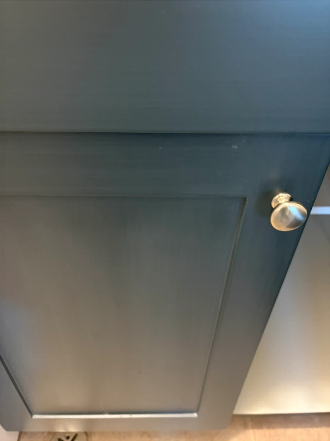 Dark Green Cabinet with White Countertop